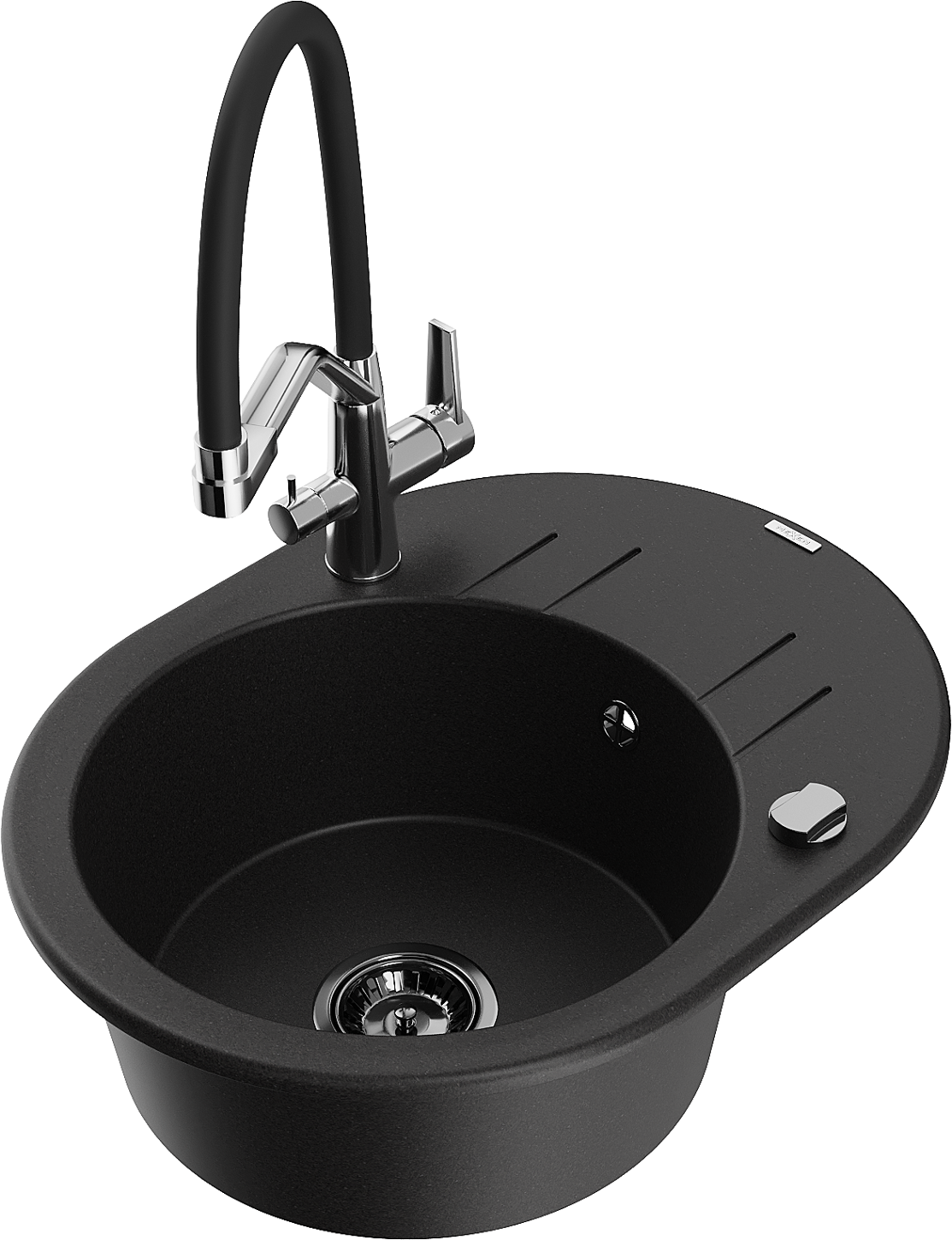Mexen Kevin egykamrás gránit mosogató Duo konyhai csapteleppel, fekete - 6517-77-671701-07-B