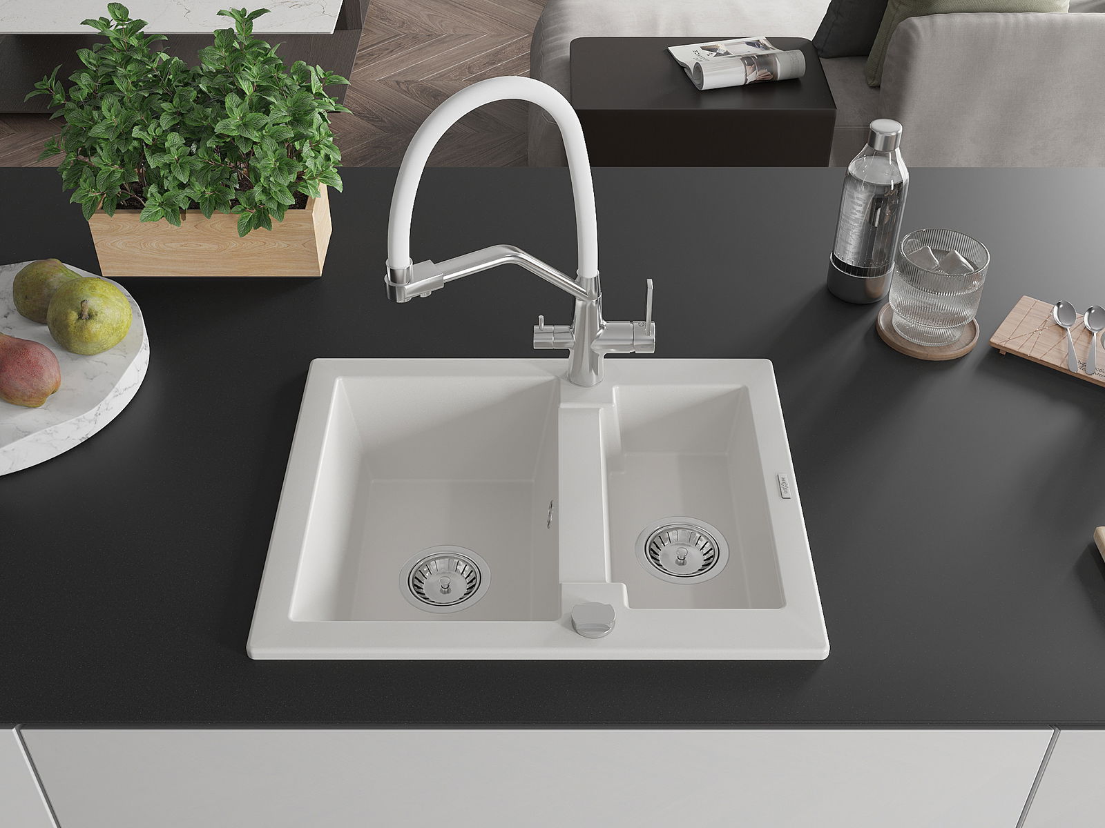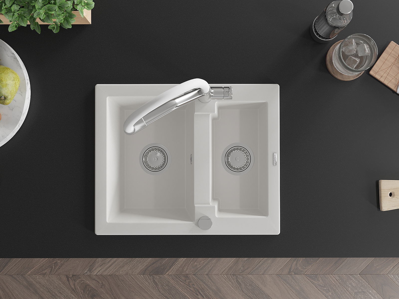 A mosogató felülete ellenáll a foltoknak és a elszíneződésnek, amelynek köszönhetően könnyű megtisztítani és hosszú ideig megtartja színét. Esztétikai és gyakorlatilag kiegészítve minden konyhát.