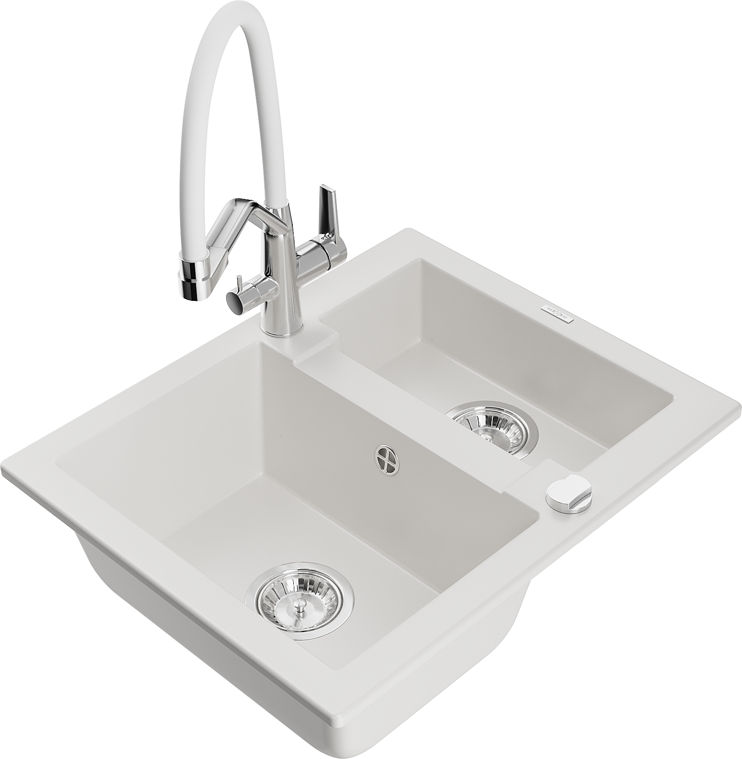 Mexen Carlos 1,5 rekeszes gránit mosogató Duo konyhai csapteleppel, fehér - 6518-20-671701-02