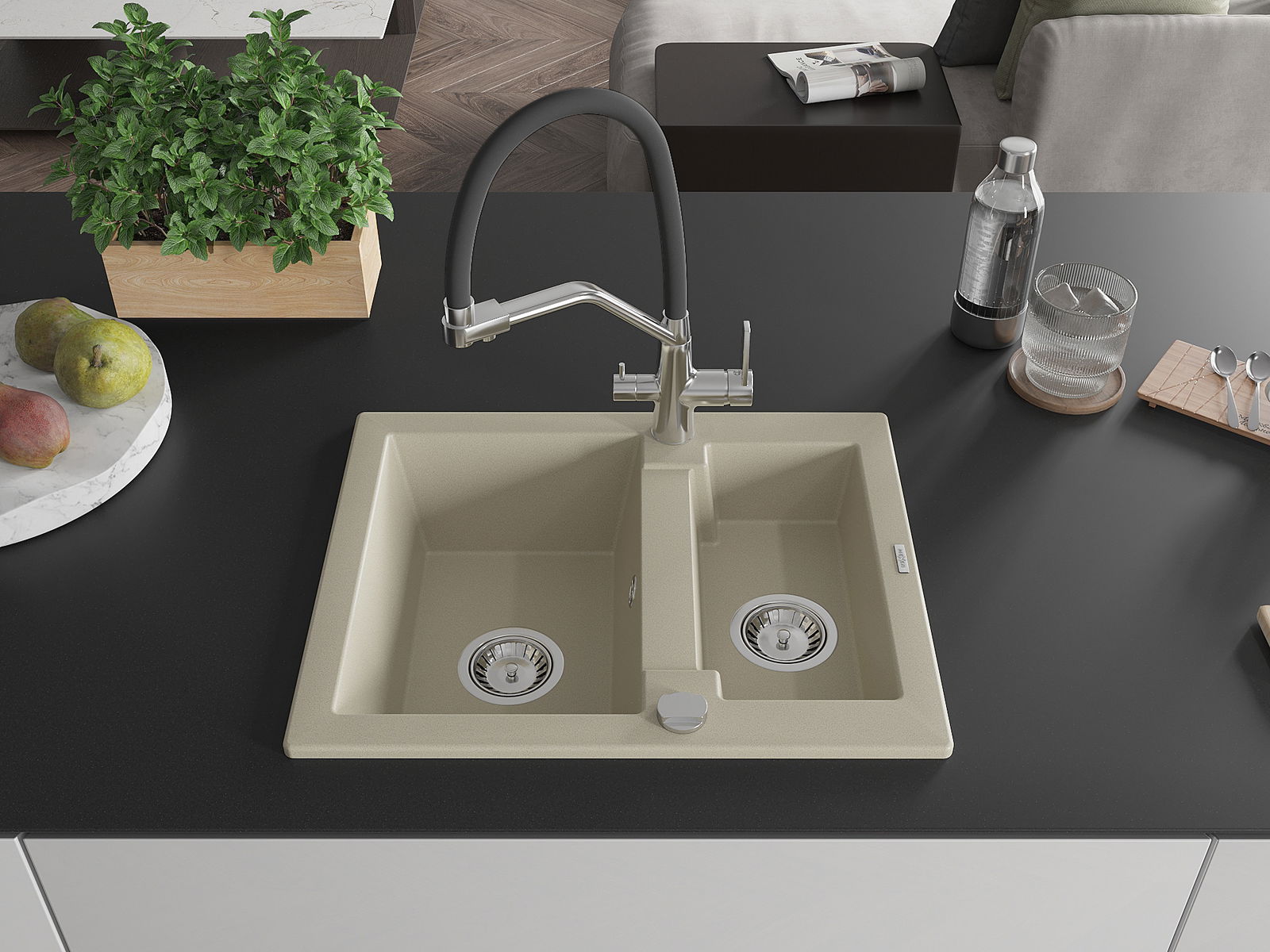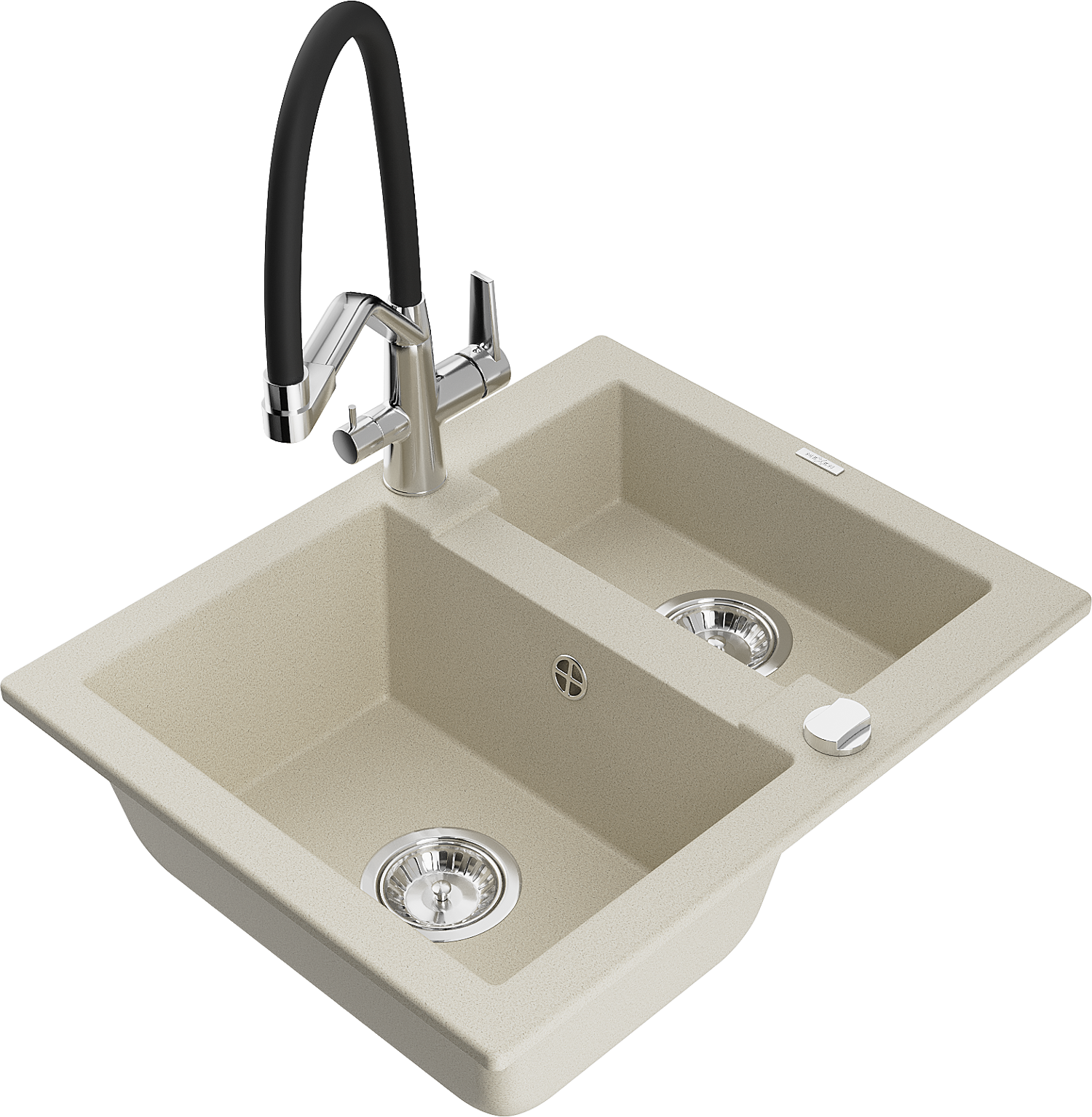 Mexen Carlos 1,5 medencés gránit mosogató Duo konyhai csapteleppel, bézs - 6518-69-671701-07