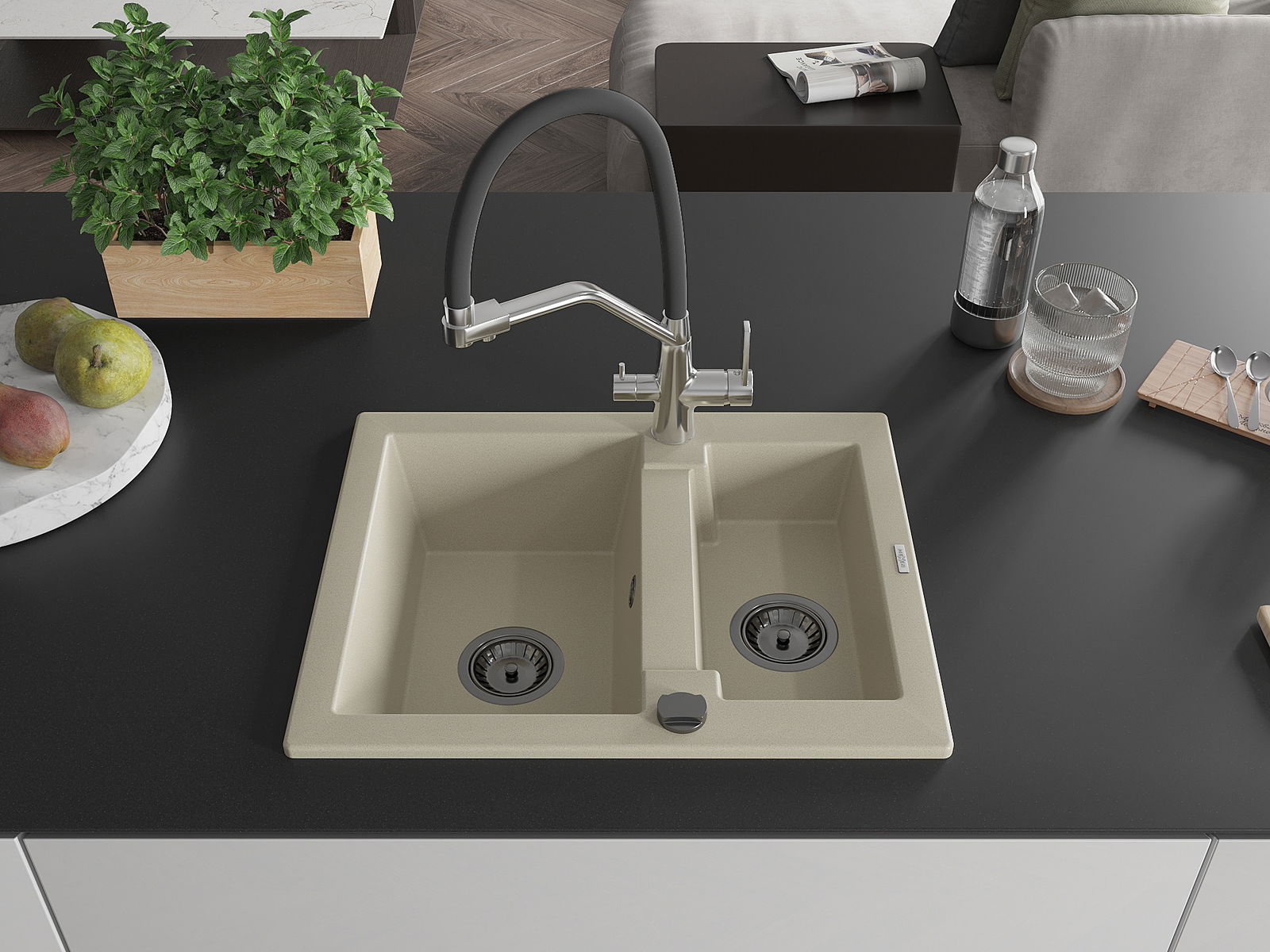 A mosogató magas minőségű gránitból készült. Elegáns, de mindenekelőtt praktikus kiegészítője minden konyhának, függetlenül annak stílusától. A gránit magas minősége és tartóssága hosszú távú használatot biztosít.