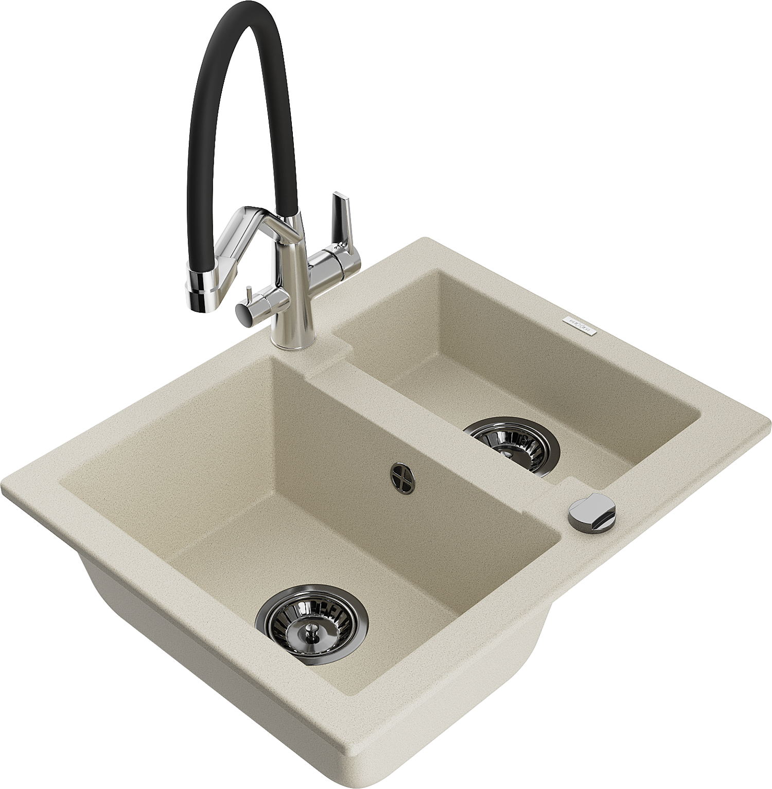Mexen Carlos 1,5 rekeszes gránit mosogató konyhai csapteleppel Duo, bézs - 6518-69-671701-07-B