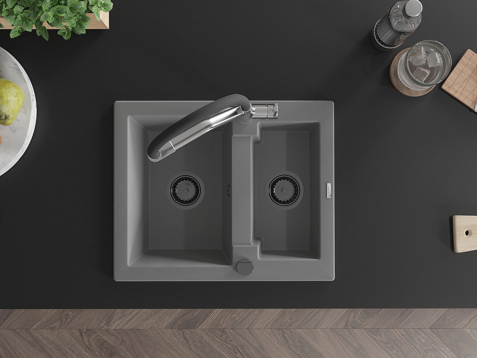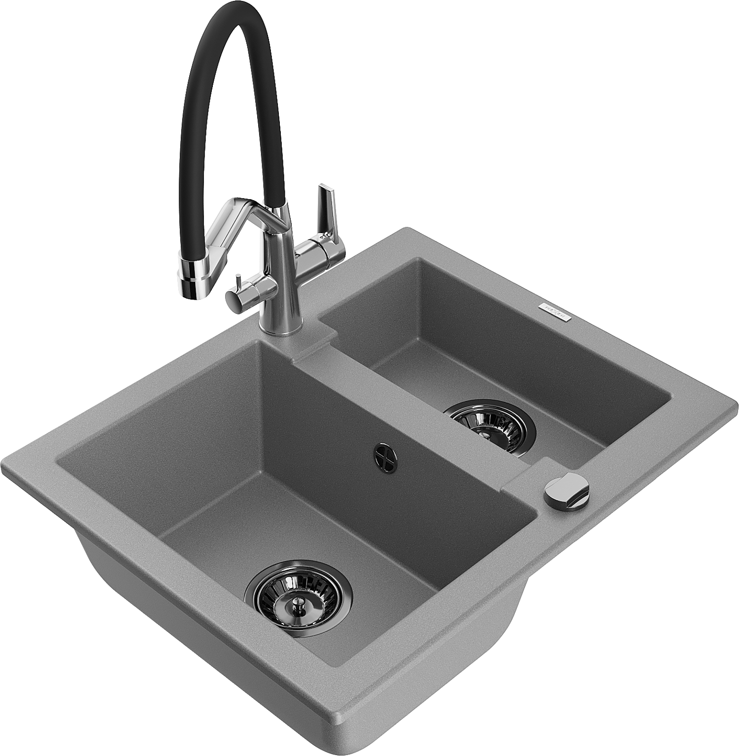 Mexen Carlos 1,5-medencés gránit mosogatótálca csapteleppel Duo, szürke - 6518-71-671701-07-B