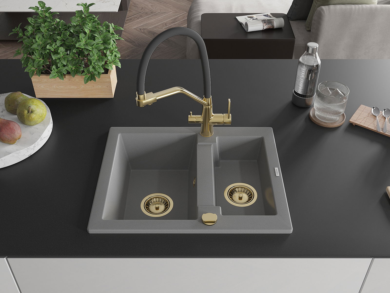 A mosogató kiváló minőségű gránitból készül. Ez egy elegáns és mindenekelőtt minden konyhához praktikus kiegészítés, stílusától függetlenül. A kiváló minőségű és a gránit tartósság biztosítja a sok éves használatát.