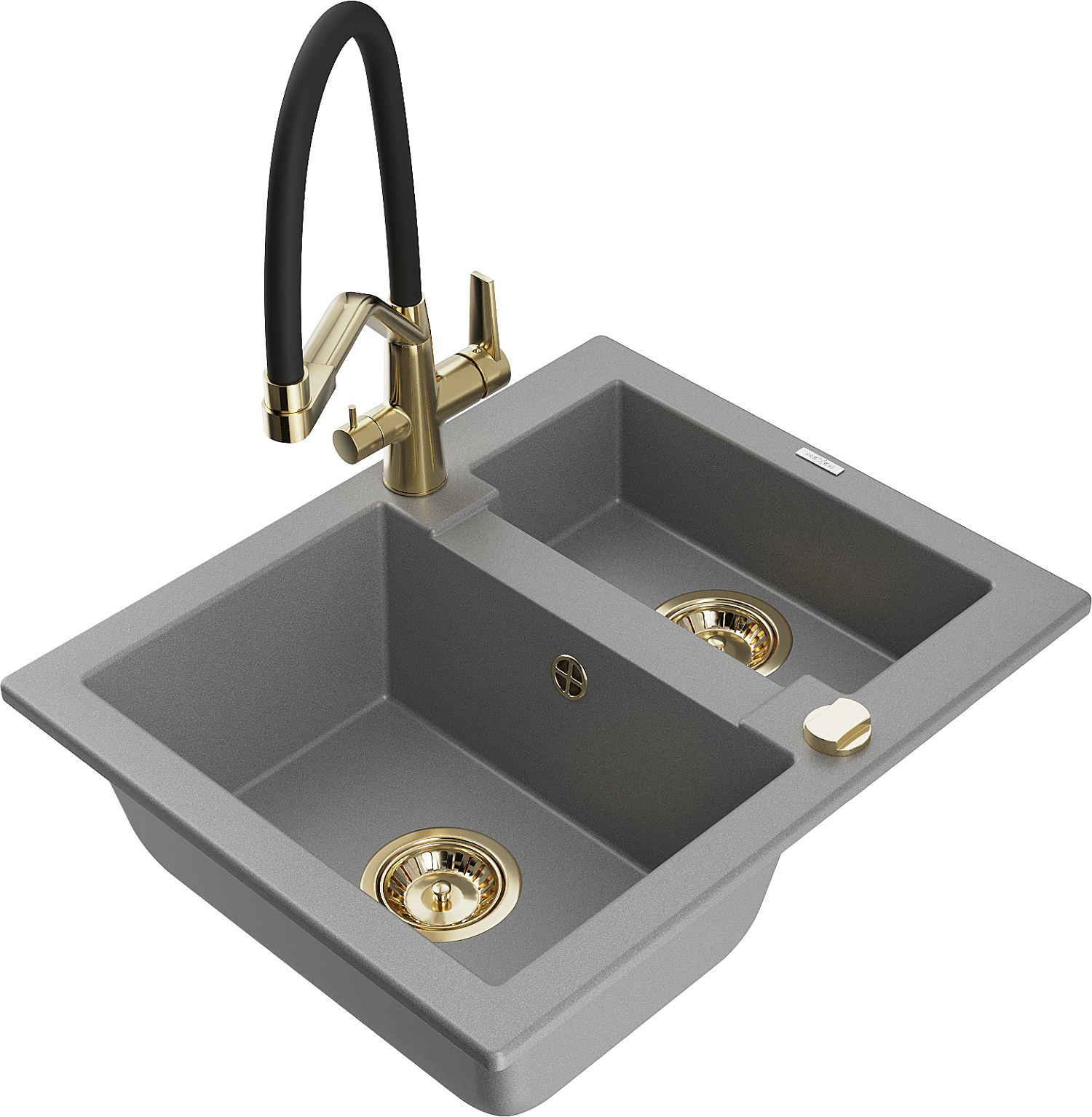 Mexen Carlos gránit 1,5 medencés mosogató Duo konyhai csapteleppel, szürke - 6518-71-671701-57-G