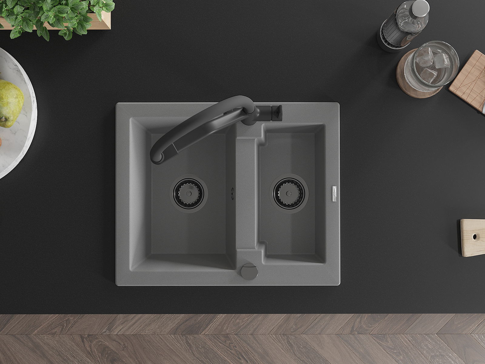 A mosogató kiváló minőségű gránitból készül. Ez egy elegáns és mindenekelőtt minden konyhához praktikus kiegészítés, stílusától függetlenül. A kiváló minőségű és a gránit tartósság biztosítja a sok éves használatát.