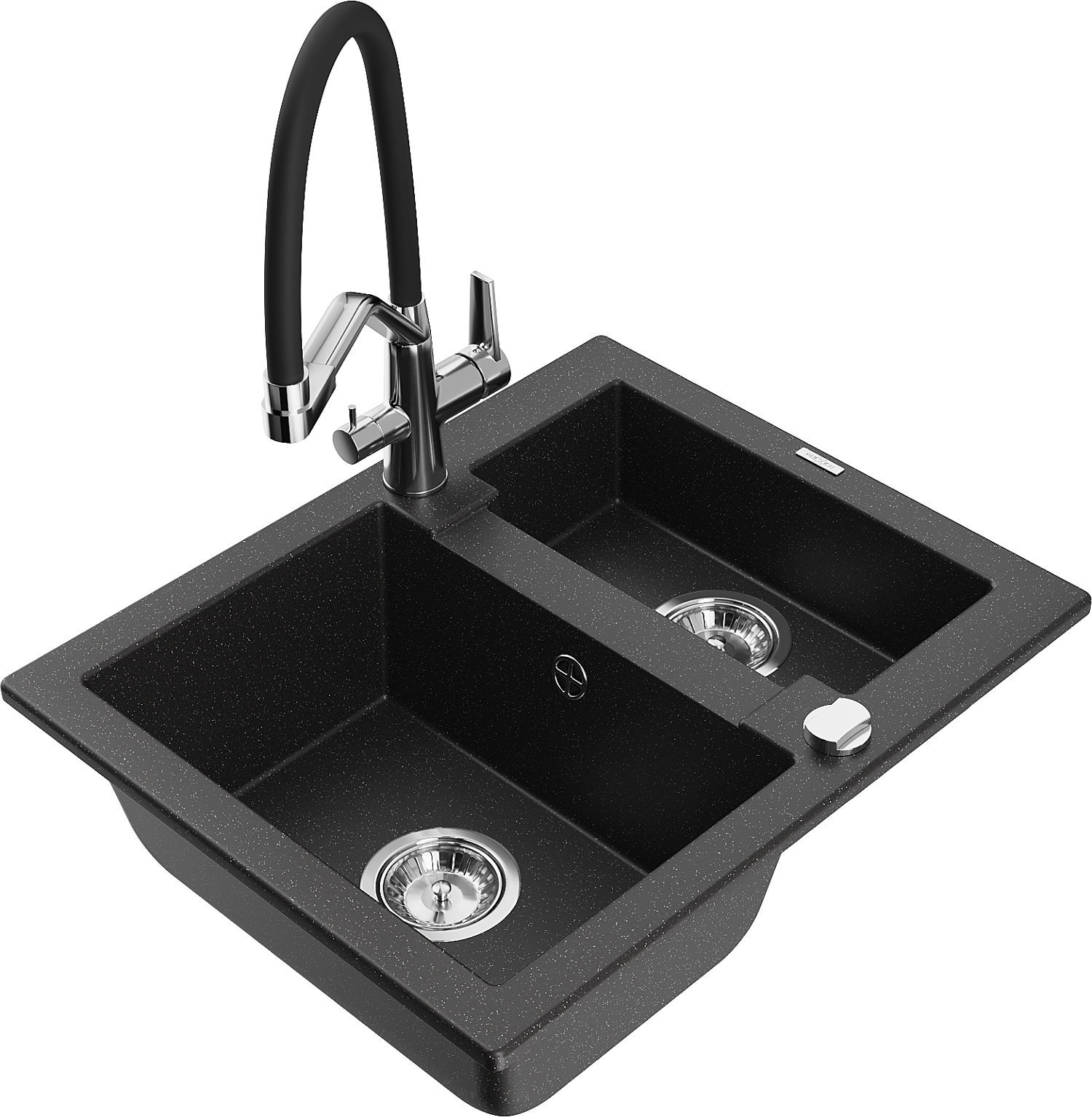 Mexen Carlos 1,5-medencés gránit mosogató Duo konyhai csapteleppel, fekete/ezüst metál - 6518-73-671701-07