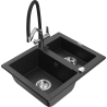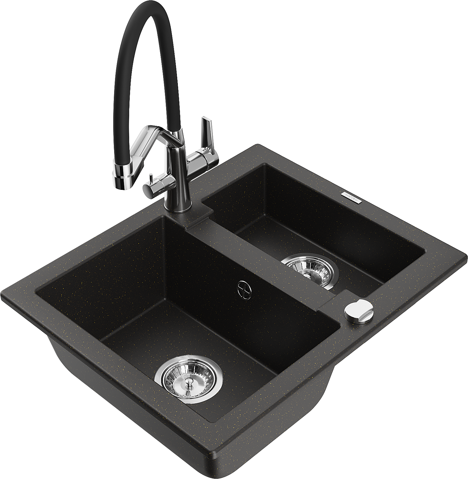 Mexen Carlos 1,5 medencés gránit mosogató Duo konyhai csapteleppel, fekete/arany metál - 6518-75-671701-07