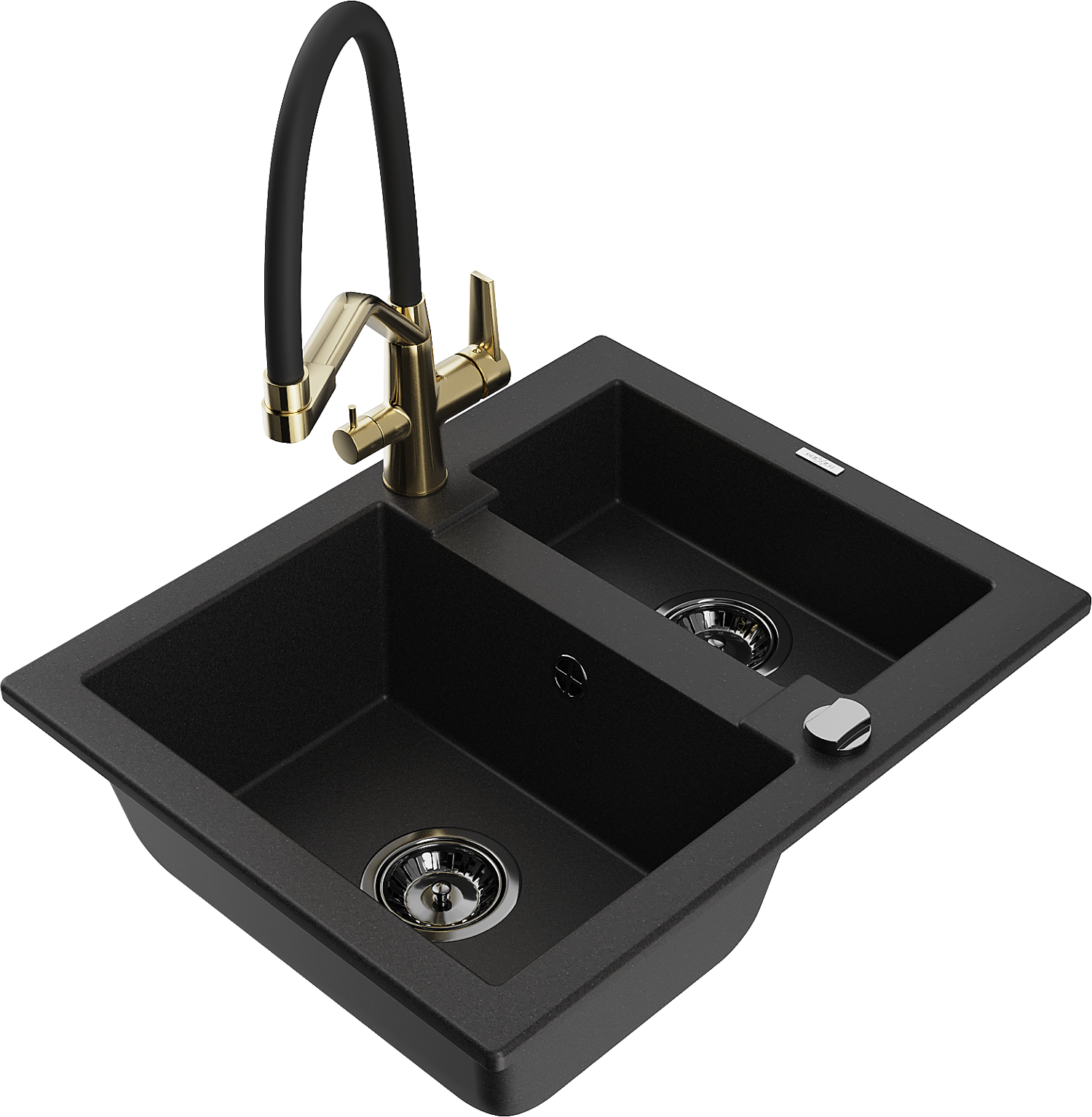 Mexen Carlos 1,5 rekeszes gránit mosogató Duo konyhai csapteleppel, fekete - 6518-77-671701-57-B