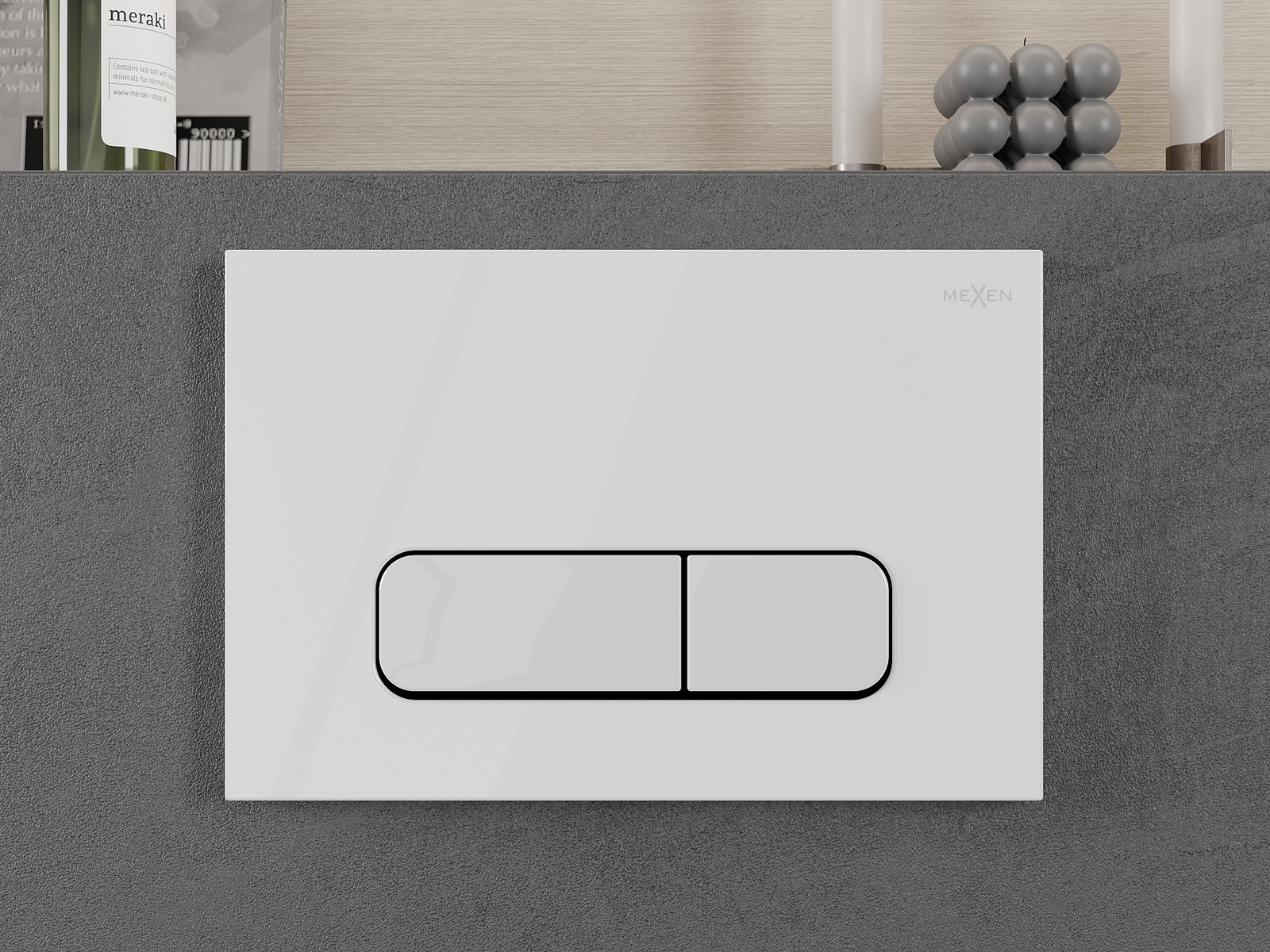 A gomb a falra szerelhető állványokhoz készült, ahol a szerelési hely az állvány elülső oldalán található. Az ilyen elhelyezés könnyű hozzáférést és kényelmes öblítéskezelést biztosít.