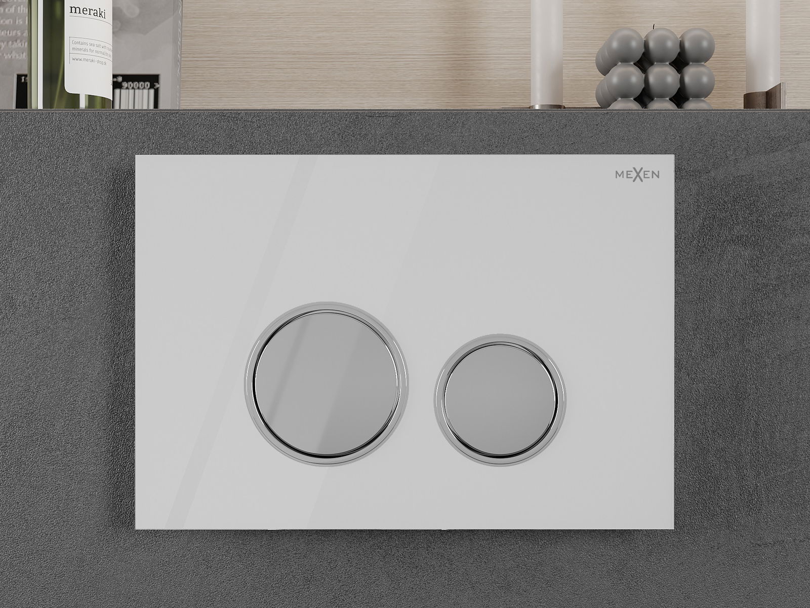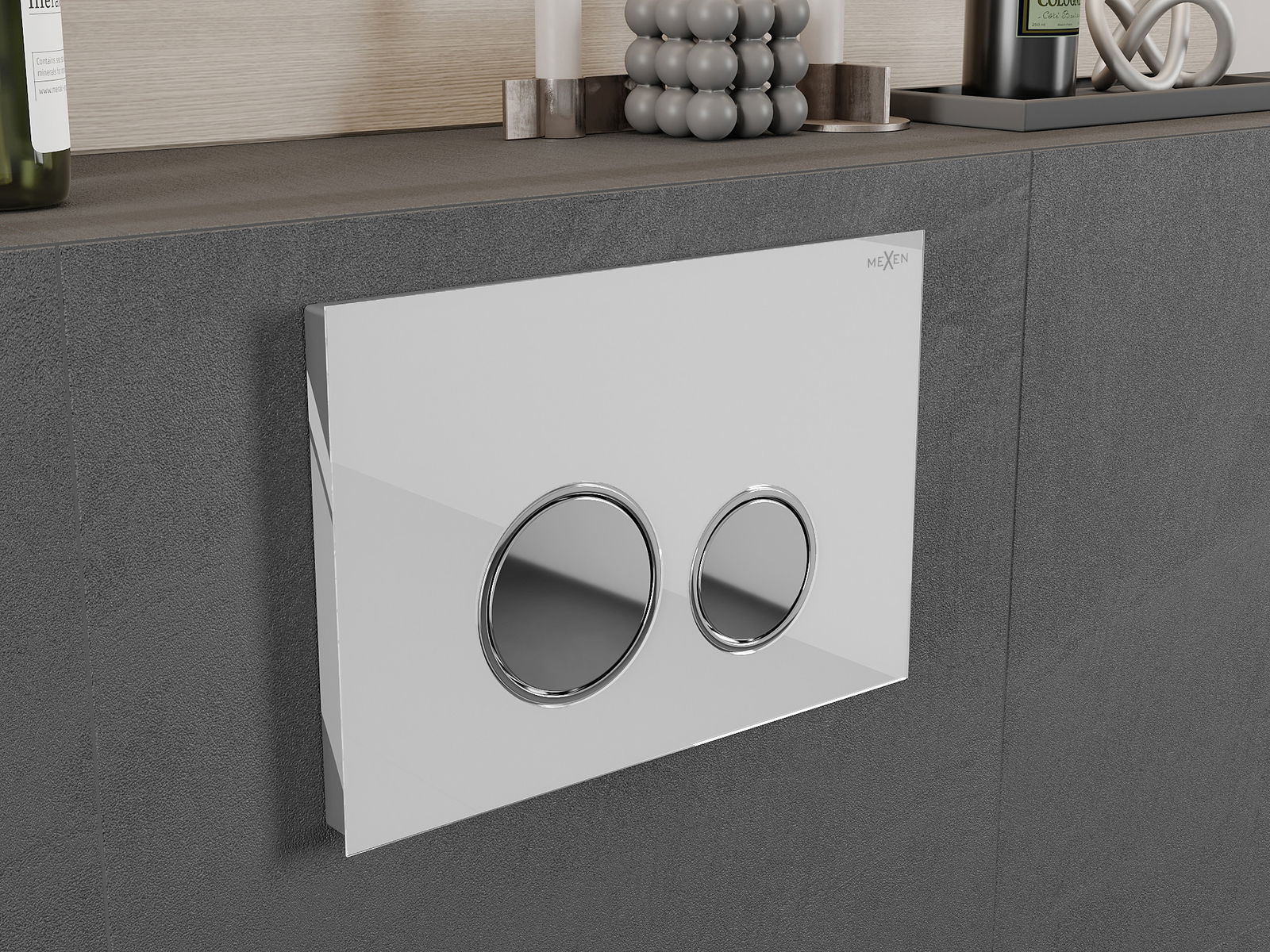 A gomb a falra szerelhető állványokhoz készült, ahol a szerelési hely az állvány elülső oldalán található. Az ilyen elhelyezés könnyű hozzáférést és kényelmes öblítéskezelést biztosít.