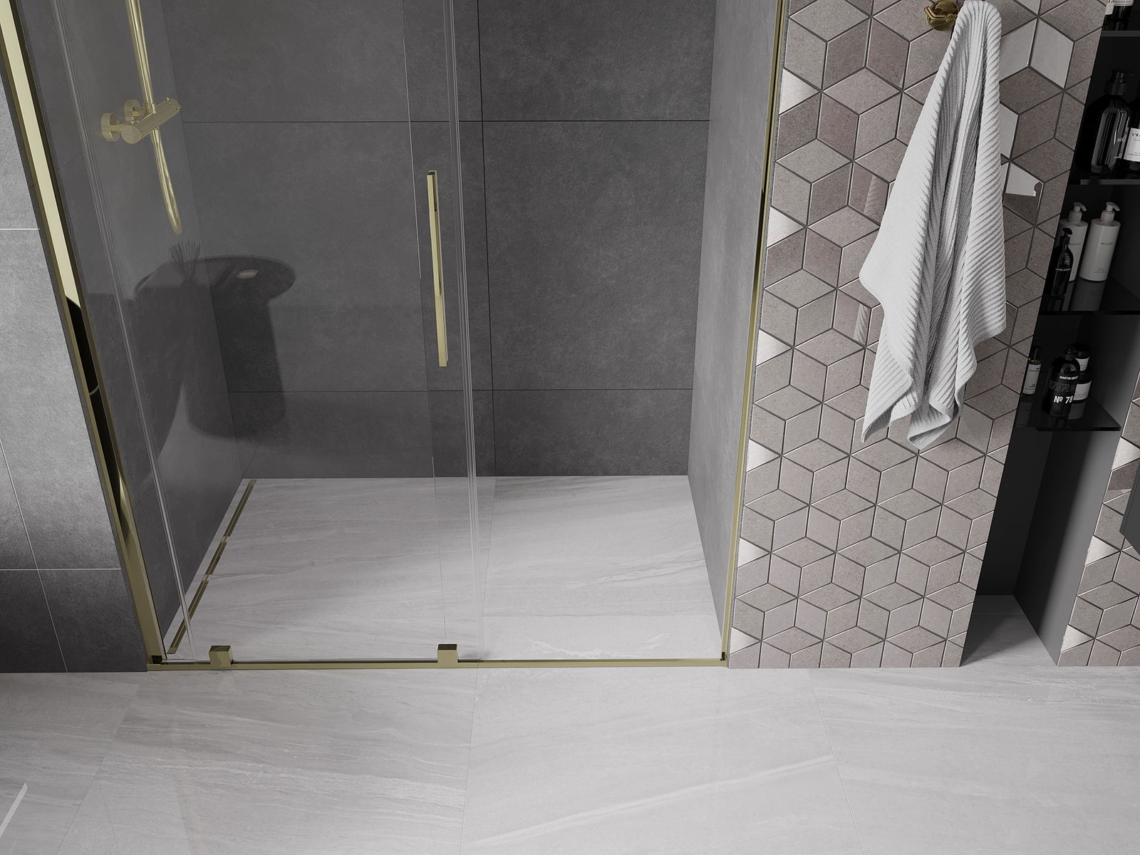 A praktikus és kényelmes fogantyú rozsdamentes acélból készült. A divatos forma a profilok színéhez illeszkedő kivitelezéssel kombinálva modern és elegáns megjelenést kölcsönöz az egésznek, amely minden fürdőszoba esztétikáját feldobja.