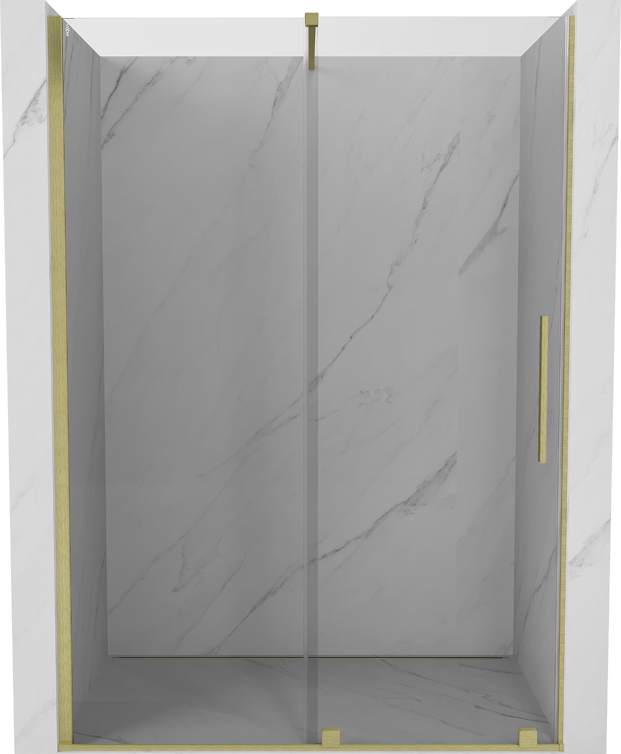 Mexen Velar zuhanyajtó tolóajtós 140 cm, átlátszó, arany kefével - 871-140-000-01-55