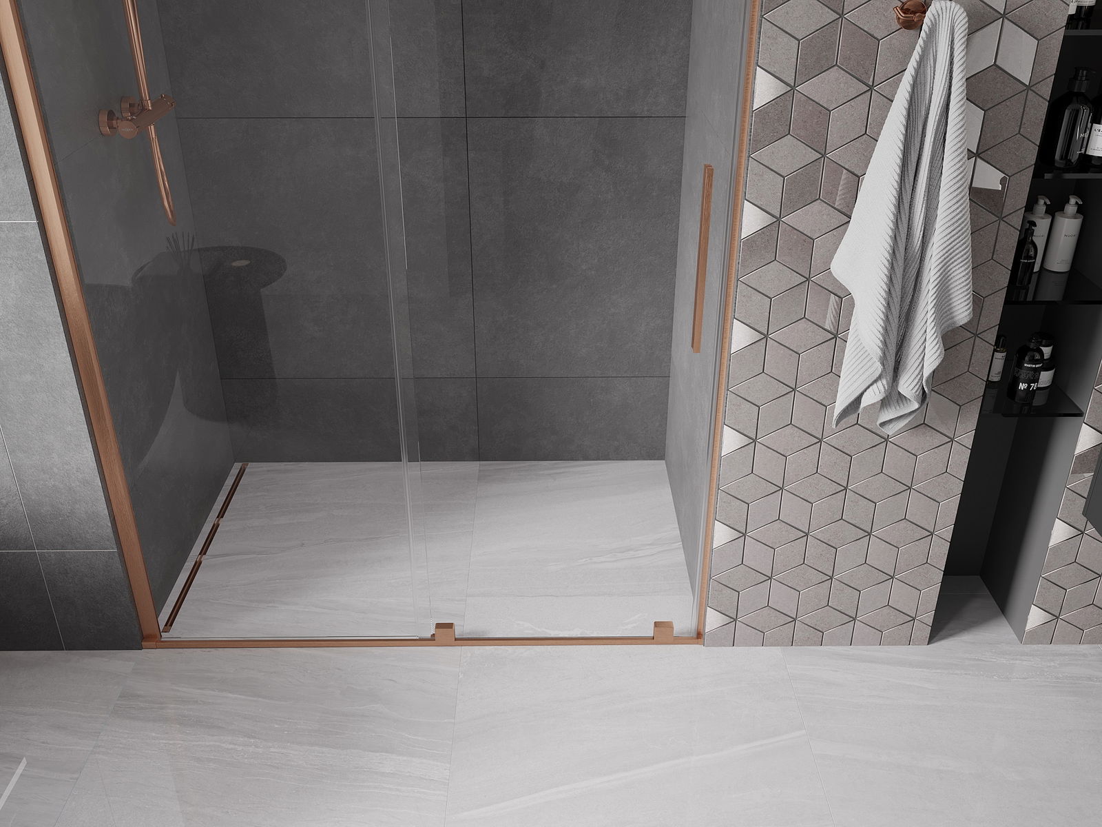 Mexen Velar 140 cm-es tolóajtós zuhanyajtó, átlátszó, kefélt réz - 871-140-000-01-65