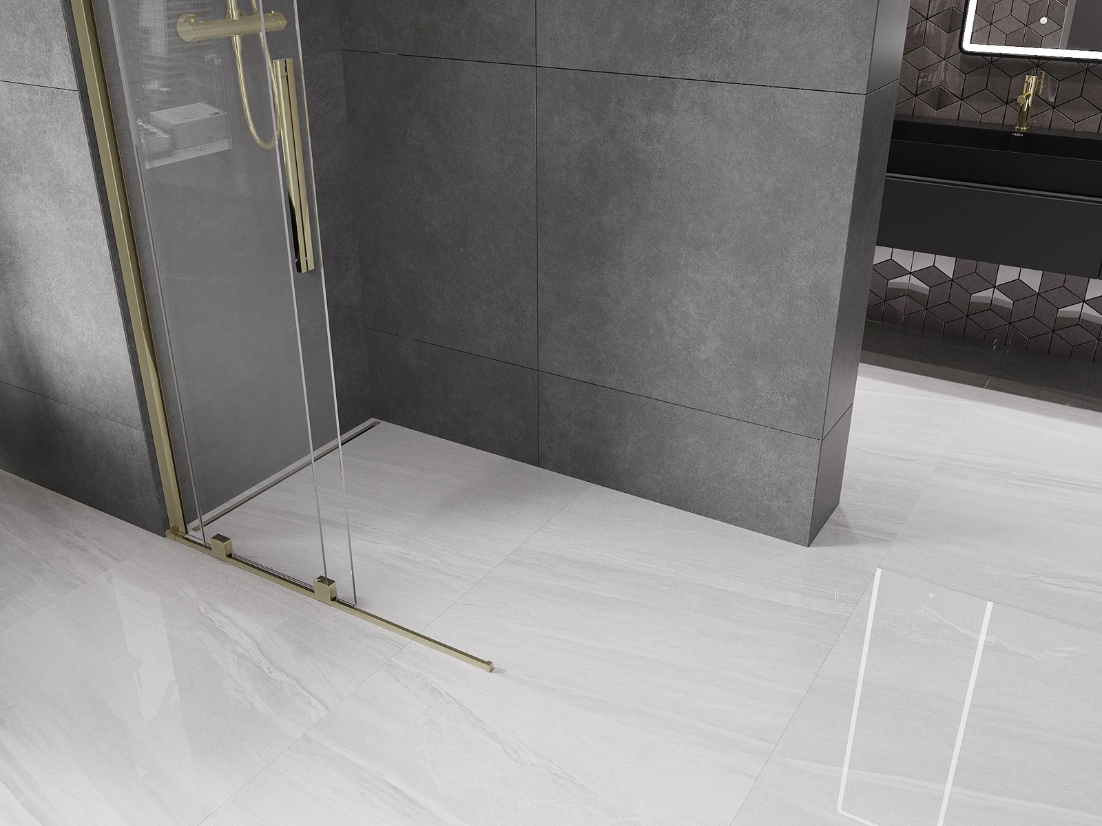 Mexen Velar toló zuhanyfal Walk-in 80 x 200 cm, átlátszó 8 mm, arany - 871-080-000-03-50