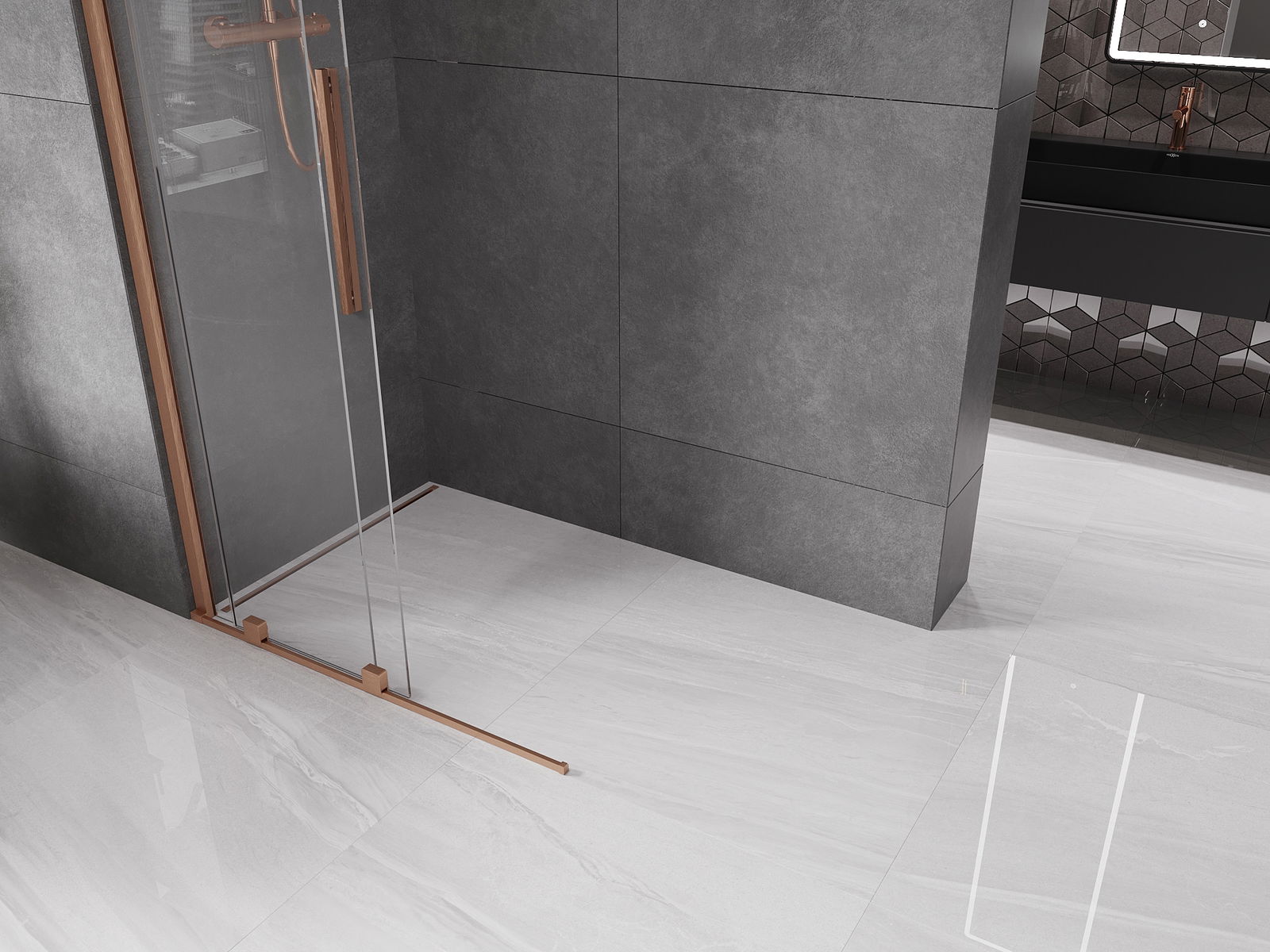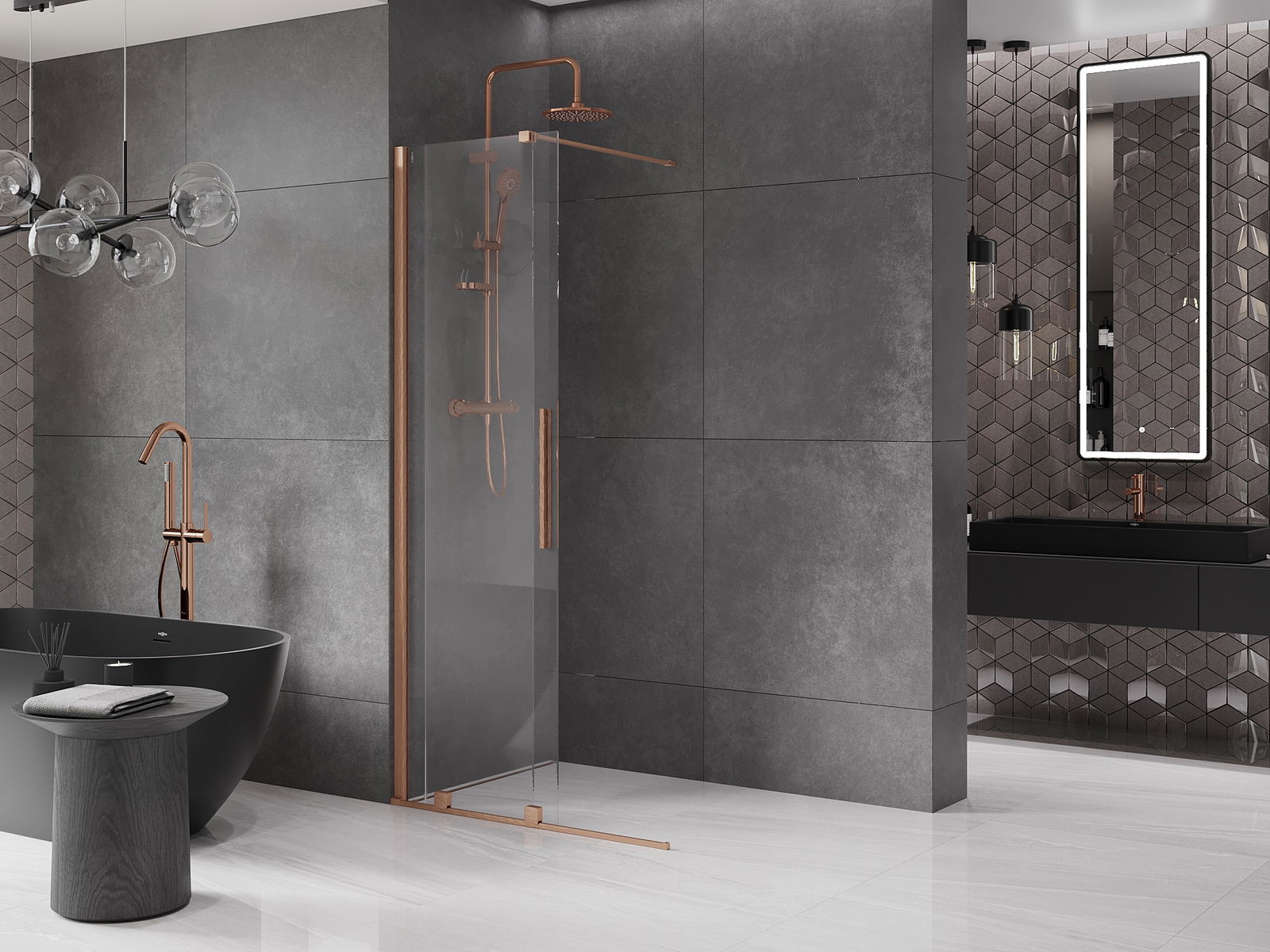 Mexen Velar zuhanyfal tolóajtós Walk-in 70 x 200 cm, áttetsző 8 mm, sörtélt réz - 871-070-000-03-65