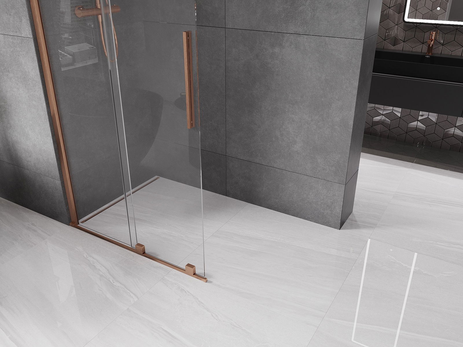 Mexen Velar walk-in toló zuhanyfal 120 x 200 cm, átlátszó 8 mm, csiszolt réz - 871-120-000-03-65