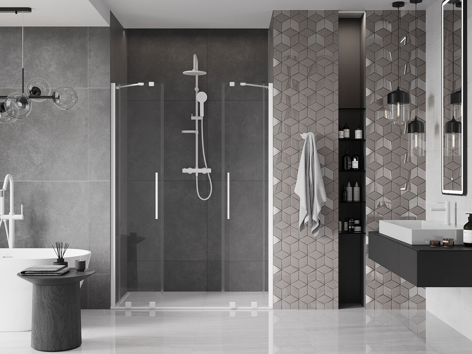 Az univerzális szerelőrendszer használatának köszönhetően a zuhany ajtók jobbra vagy balra szerelhetők, az Ön igényeitől függően. Ennek köszönhetően könnyen megtervezheti a fürdőszoba helyére szabott zuhanyt.