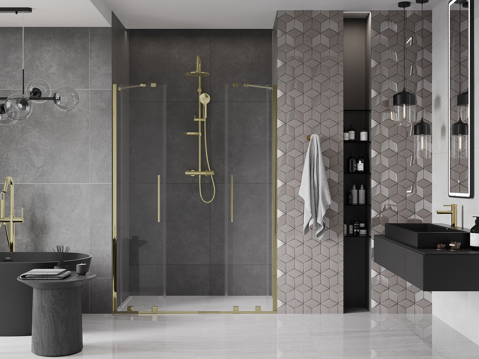 A praktikus és kényelmes fogantyú rozsdamentes acélból készült. A divatos forma a profilok színéhez igazított kivitelezéssel modern és stílusos megjelenést kölcsönöz az egésznek, kiemelve minden fürdőszoba esztétikáját.