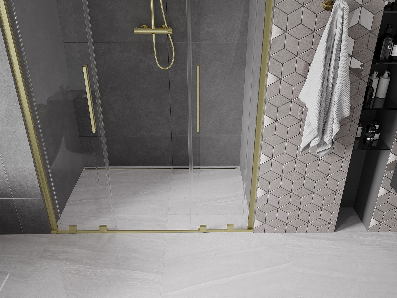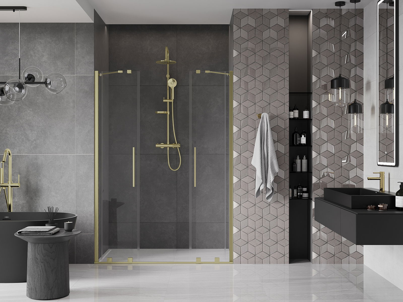 Mexen Velar Duo tolóajtós zuhanyajtó 160 cm, átlátszó, arany kefe - 871-160-000-02-55
