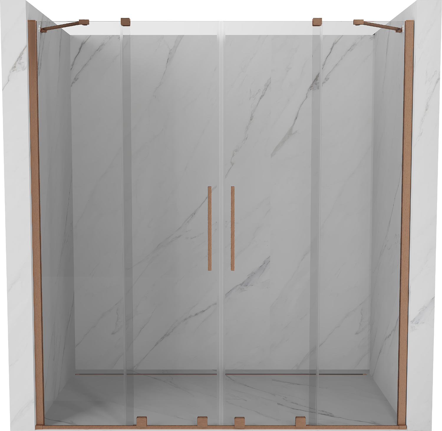 Mexen Velar Duo tolóajtós zuhanyajtó 170 cm, átlátszó, kefe hatású réz - 871-170-000-02-65