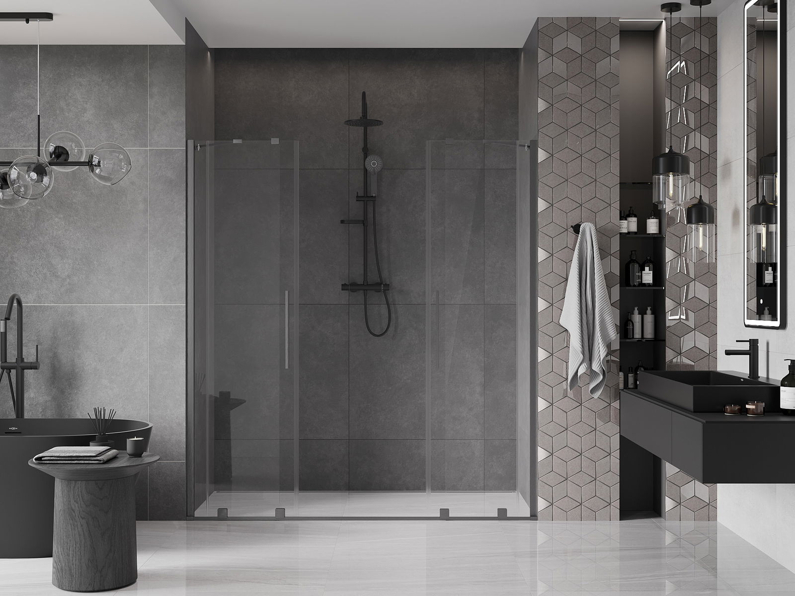 Mexen Velar Duo 200 cm toló zuhanyajtó, átlátszó, szürke (gun gray) kefe - 871-200-000-02-66