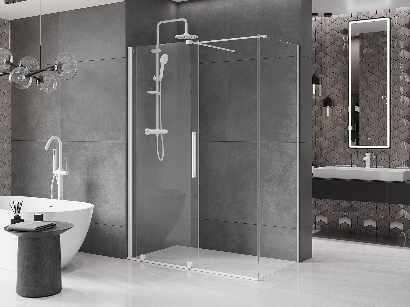 A praktikus és kényelmes fogantyú rozsdamentes acélból készült. A divatos forma a profilok színéhez illeszkedő kivitelezéssel kombinálva modern és elegáns megjelenést kölcsönöz az egésznek, amely minden fürdőszoba esztétikáját feldobja.