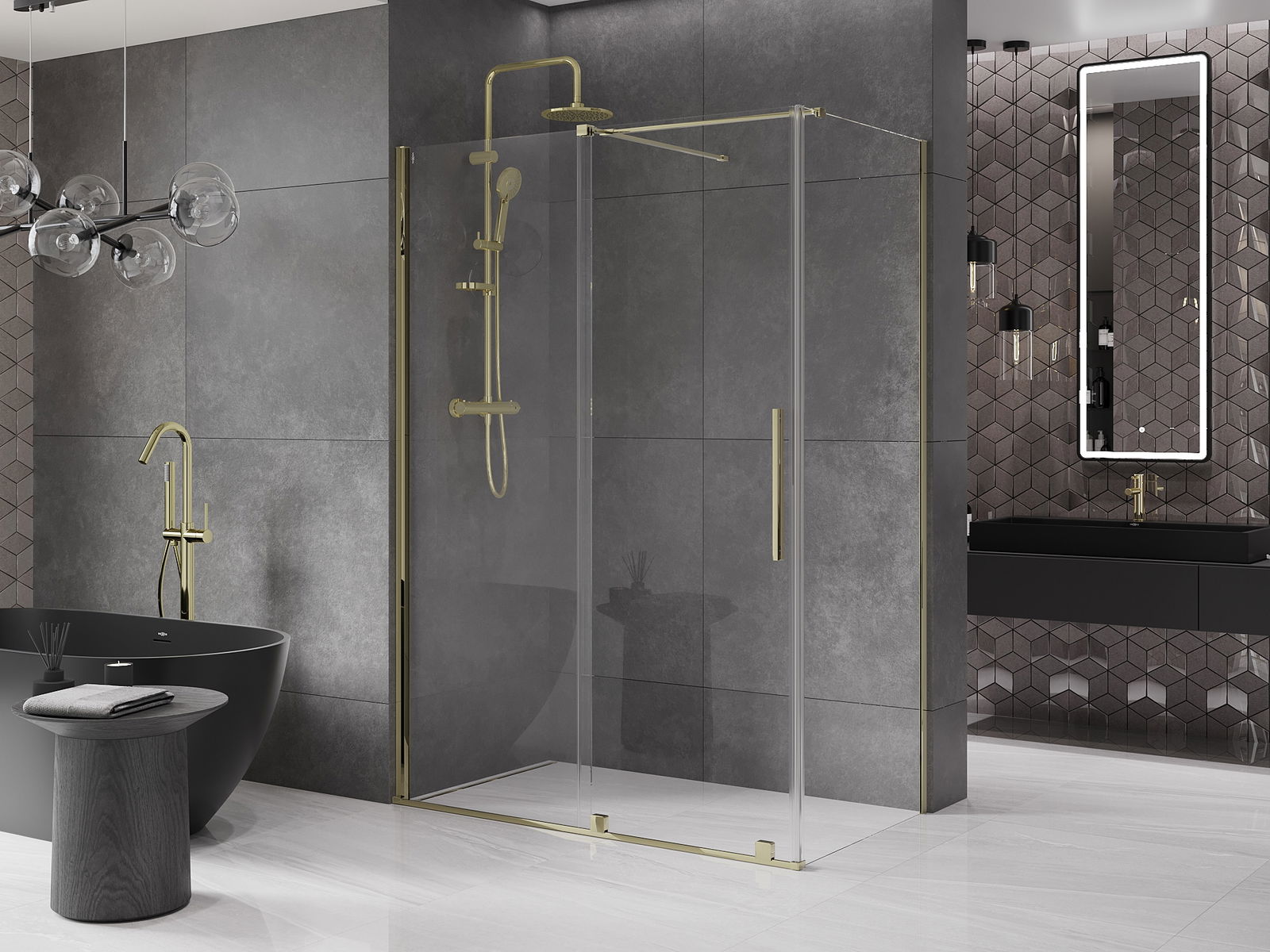 Mexen Velar toló zuhanyfülke 150 x 90 cm, átlátszó, arany - 871-150-090-01-50