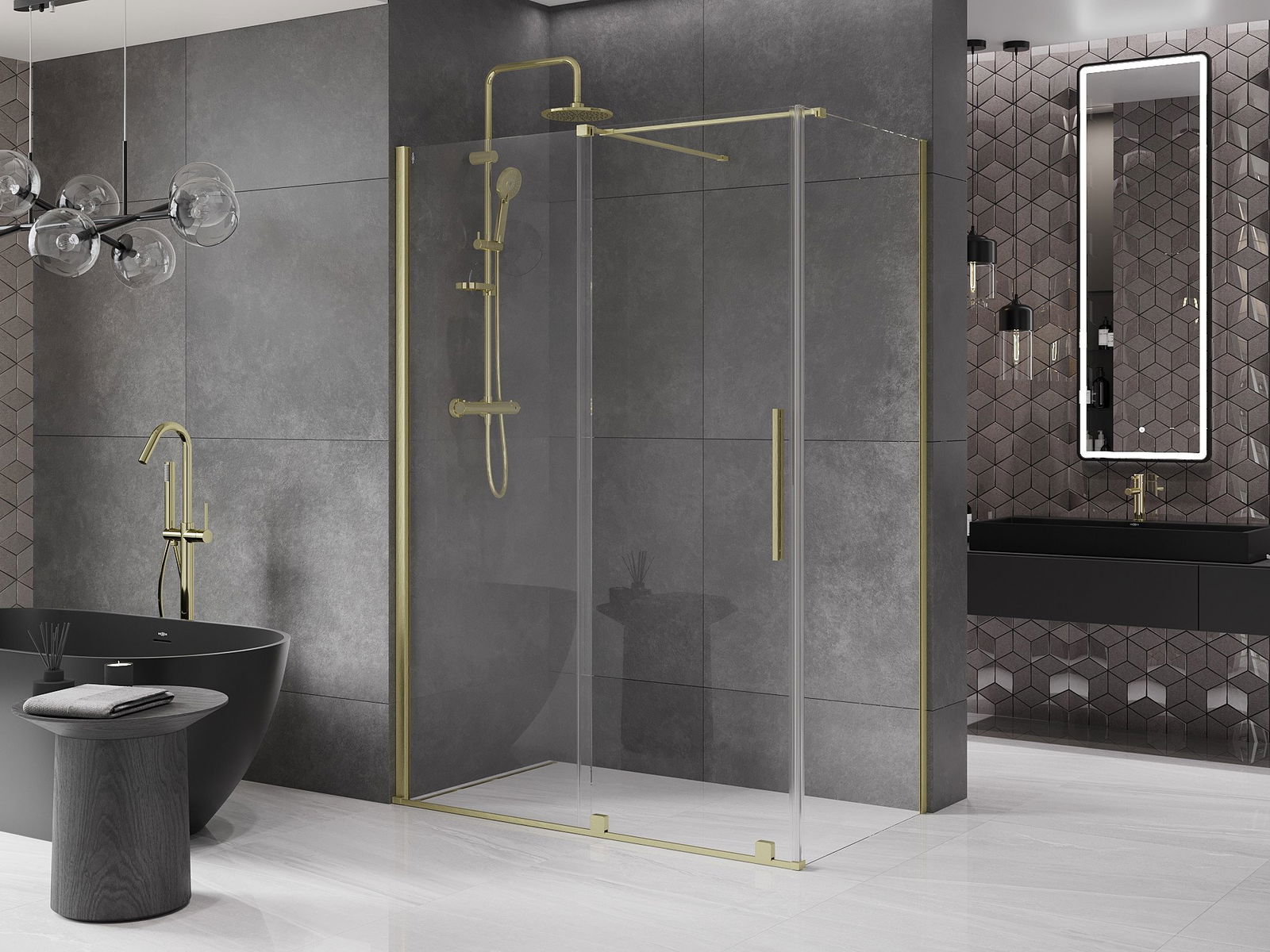 A praktikus és kényelmes fogantyú rozsdamentes acélból készült. A divatos forma a profilok színéhez illeszkedő kivitelezéssel kombinálva modern és elegáns megjelenést kölcsönöz az egésznek, amely minden fürdőszoba esztétikáját feldobja.