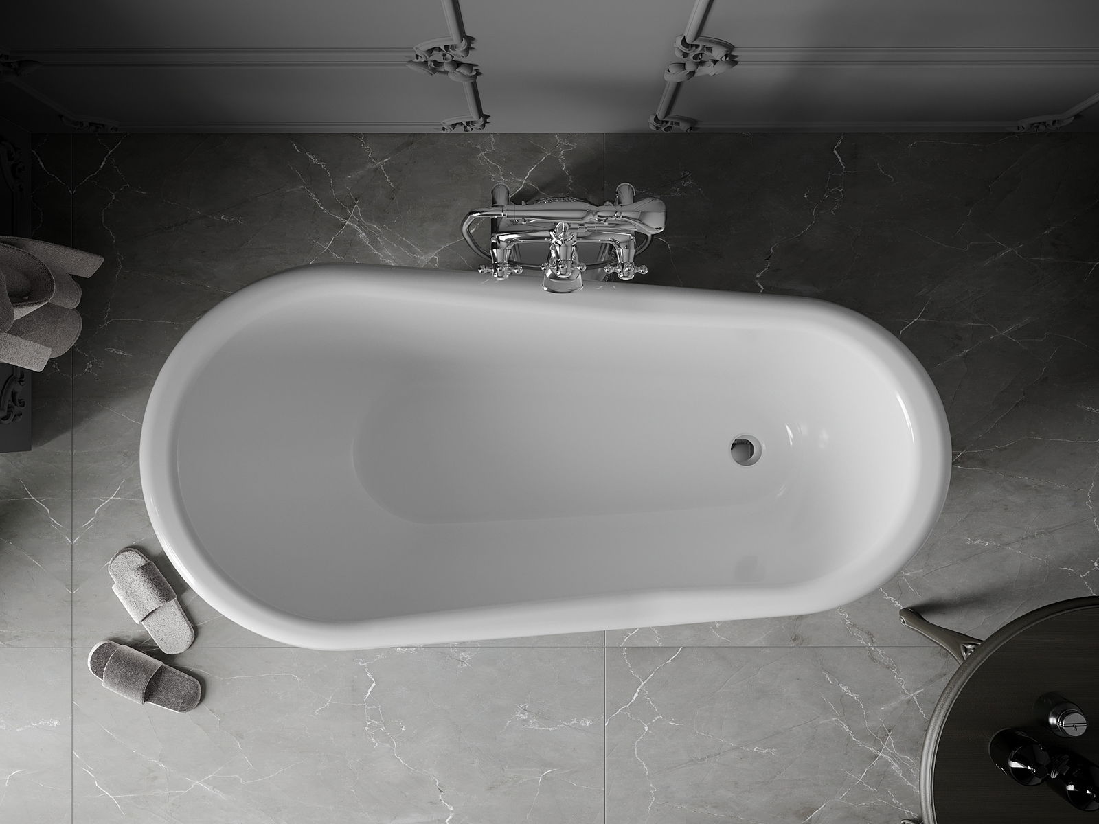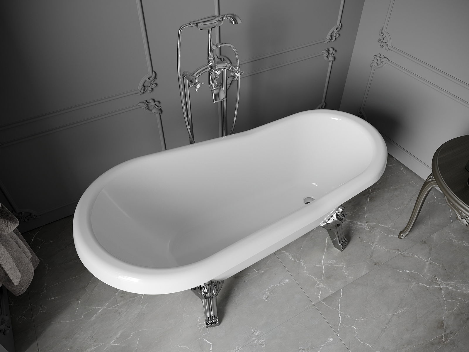 A fürdőkád állítható lábakkal van felszerelve, amelyek lehetővé teszik a kád kiegyenlítését akár egyenetlen felületen is. Gyakorlati megoldás, amely biztosítja a nagyobb stabilitást és biztonságot a használat és a telepítés megkönnyítése során.