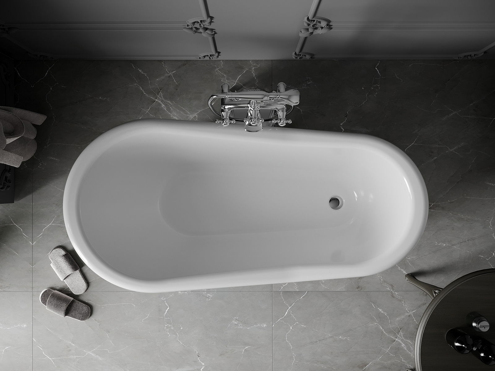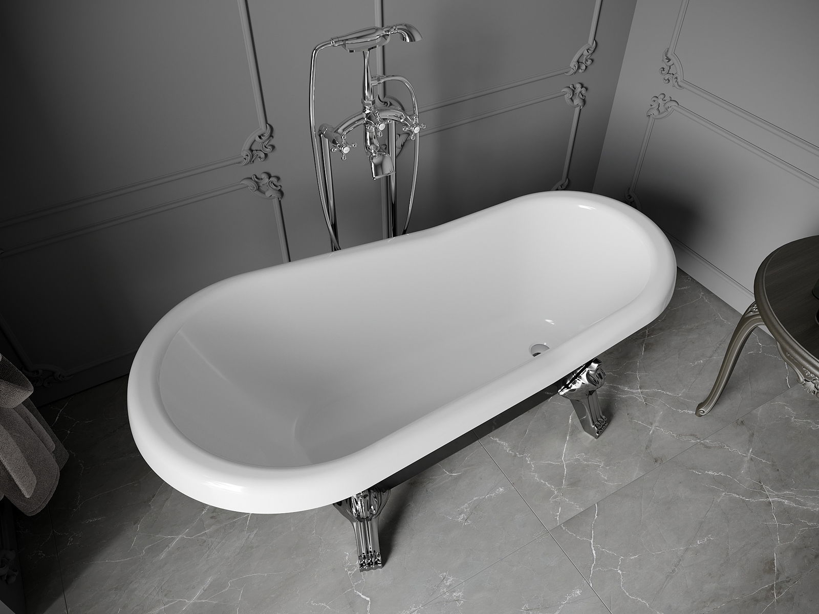 A fürdőkád állítható lábakkal van felszerelve, amelyek lehetővé teszik a kád kiegyenlítését akár egyenetlen felületen is. Gyakorlati megoldás, amely biztosítja a nagyobb stabilitást és biztonságot a használat és a telepítés megkönnyítése során.