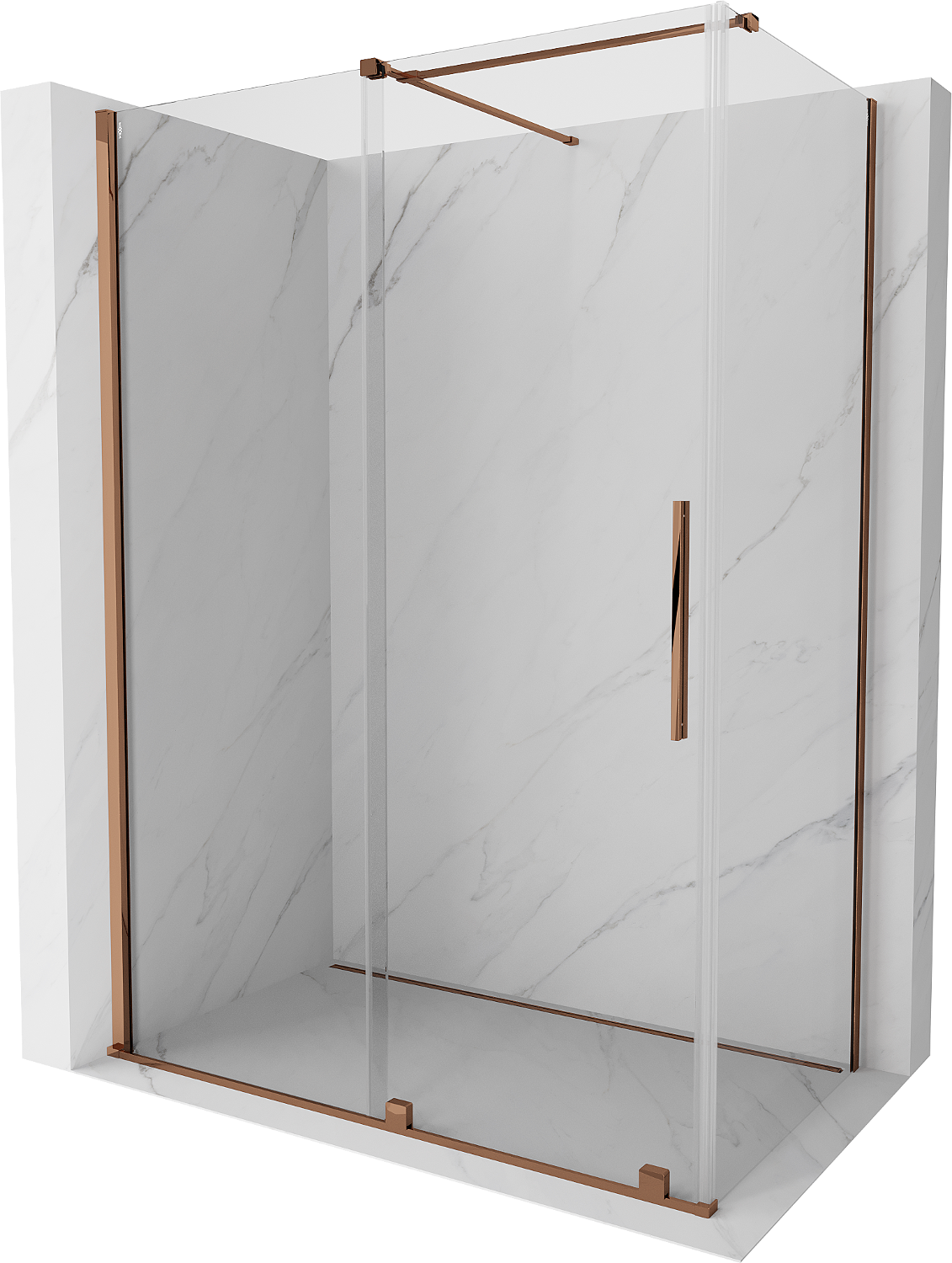 Mexen Velar zuhanykabin tolóajtóval 150 x 75 cm, átlátszó, rózsaarany - 871-150-075-01-60
