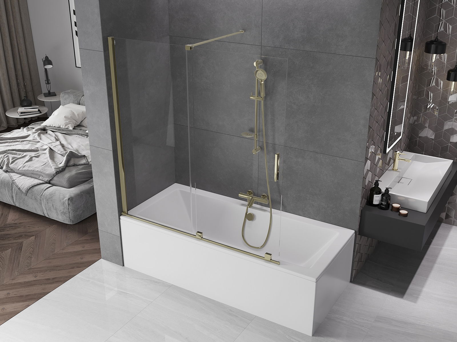 Mexen Velar kétszárnyú toló fürdőszobai paraván 150 x 150 cm, átlátszó, arany - 896-150-000-01-50