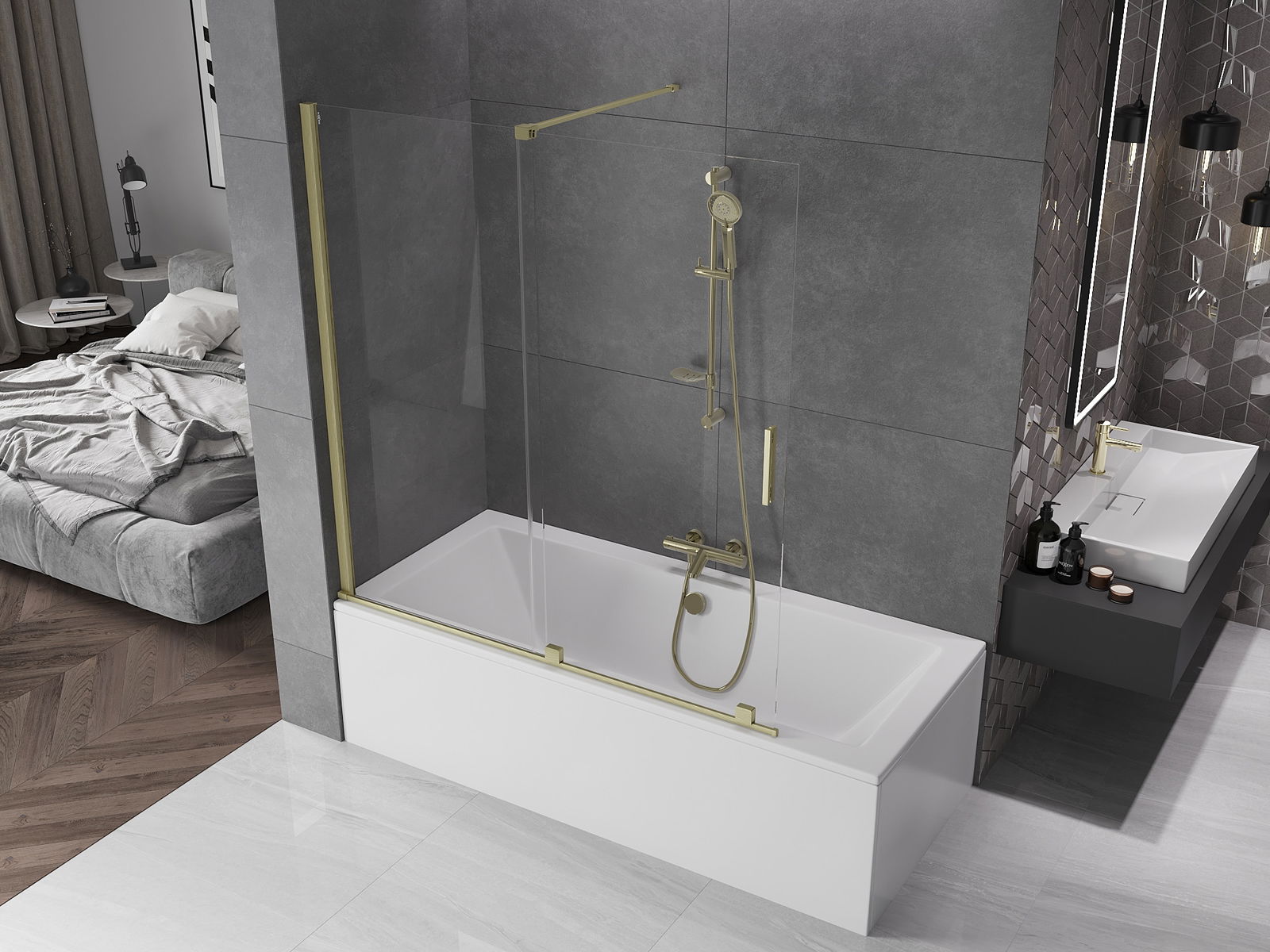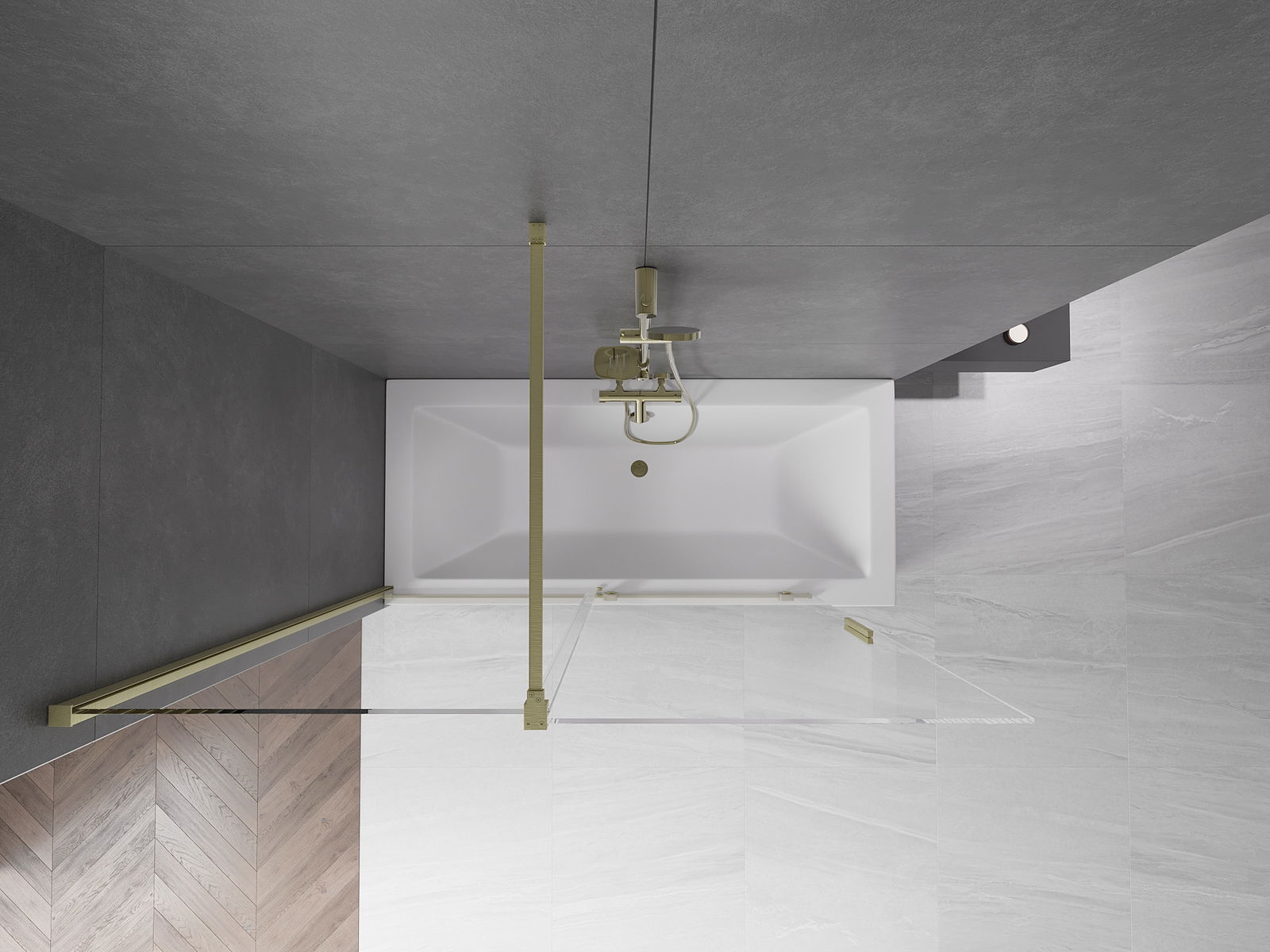 Mexen Velar 2-szárnyú tolható fürdőparaván 150 x 150 cm, átlátszó, matt arany - 896-150-000-01-55