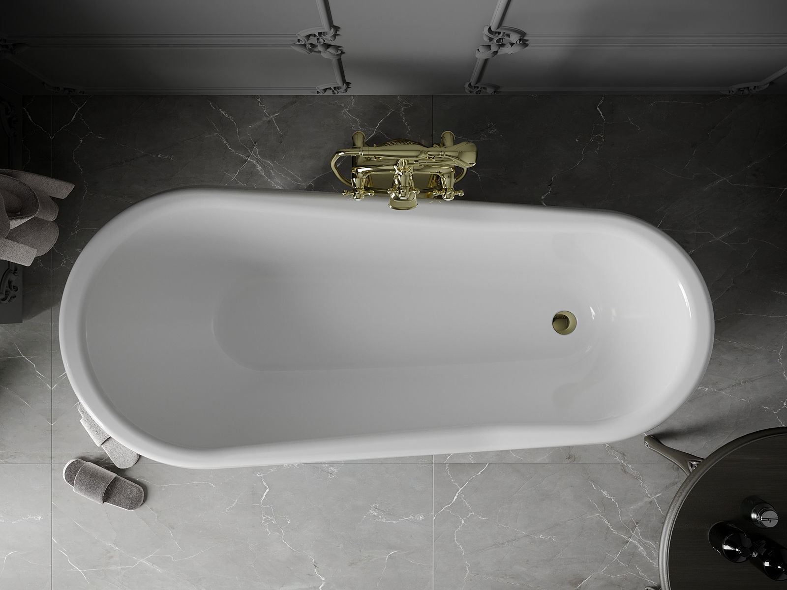 A fürdőkád állítható lábakkal van felszerelve, amelyek lehetővé teszik a kád kiegyenlítését akár egyenetlen felületen is. Gyakorlati megoldás, amely biztosítja a nagyobb stabilitást és biztonságot a használat és a telepítés megkönnyítése során.