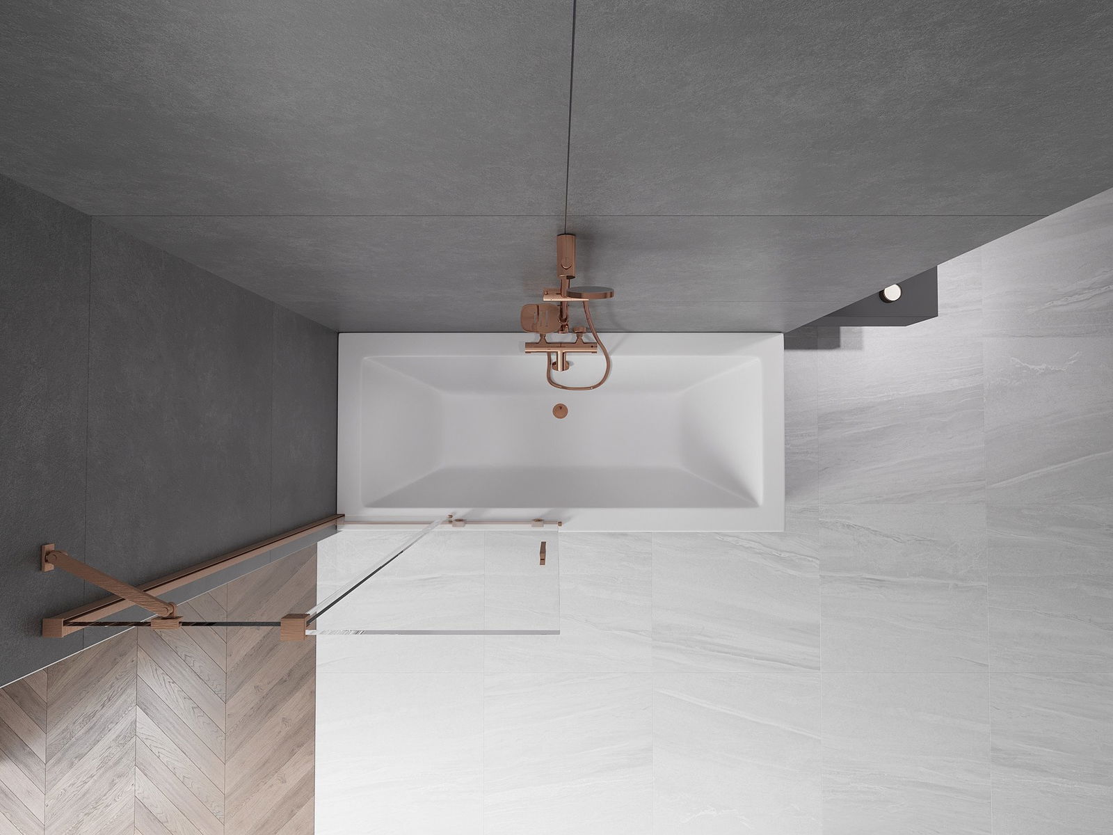 Mexen Velar kádparaván 2-szárnyú tolóajtós 90 x 150 cm, átlátszó, kefélt réz - 896-090-000-01-65