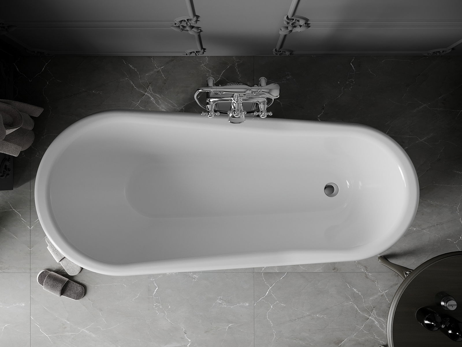 A fürdőkád állítható lábakkal van felszerelve, amelyek lehetővé teszik a kád kiegyenlítését akár egyenetlen felületen is. Gyakorlati megoldás, amely biztosítja a nagyobb stabilitást és biztonságot a használat és a telepítés megkönnyítése során.
