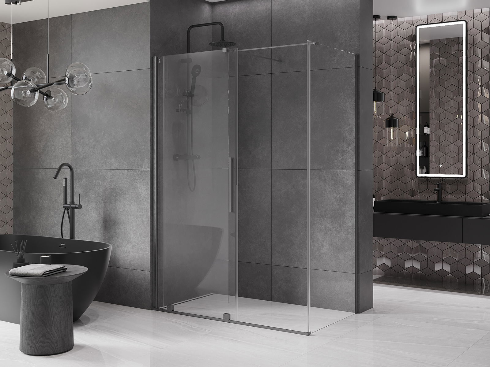 Mexen Velar tolóajtós zuhanykabin 150 x 80 cm, átlátszó, szálcsiszolt pisztolyszürke - 871-150-080-01-66
