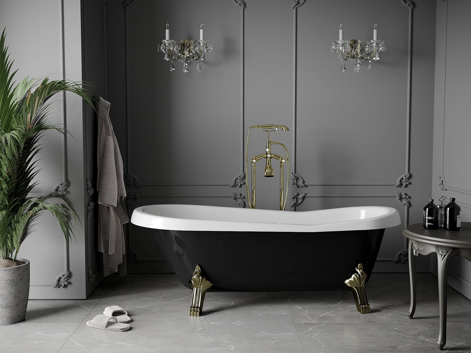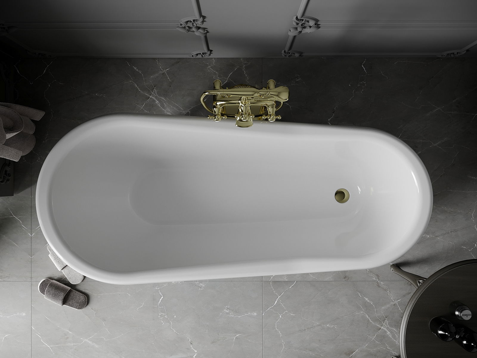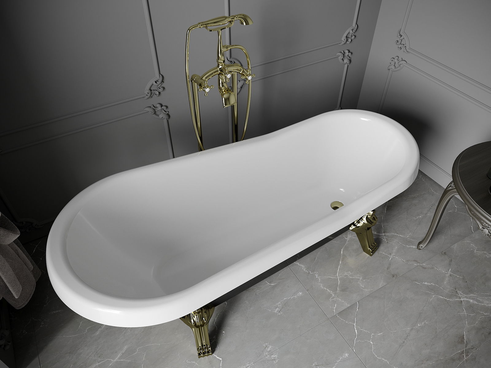 A fürdőkád állítható lábakkal van felszerelve, amelyek lehetővé teszik a kád kiegyenlítését akár egyenetlen felületen is. Gyakorlati megoldás, amely biztosítja a nagyobb stabilitást és biztonságot a használat és a telepítés megkönnyítése során.