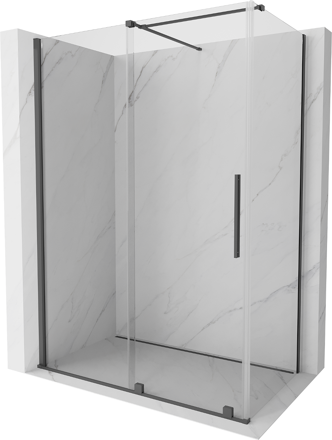Mexen Velar tolóajtós zuhanykabin 160 x 70 cm, átlátszó, szálcsiszolt pisztolyszürke - 871-160-070-01-66