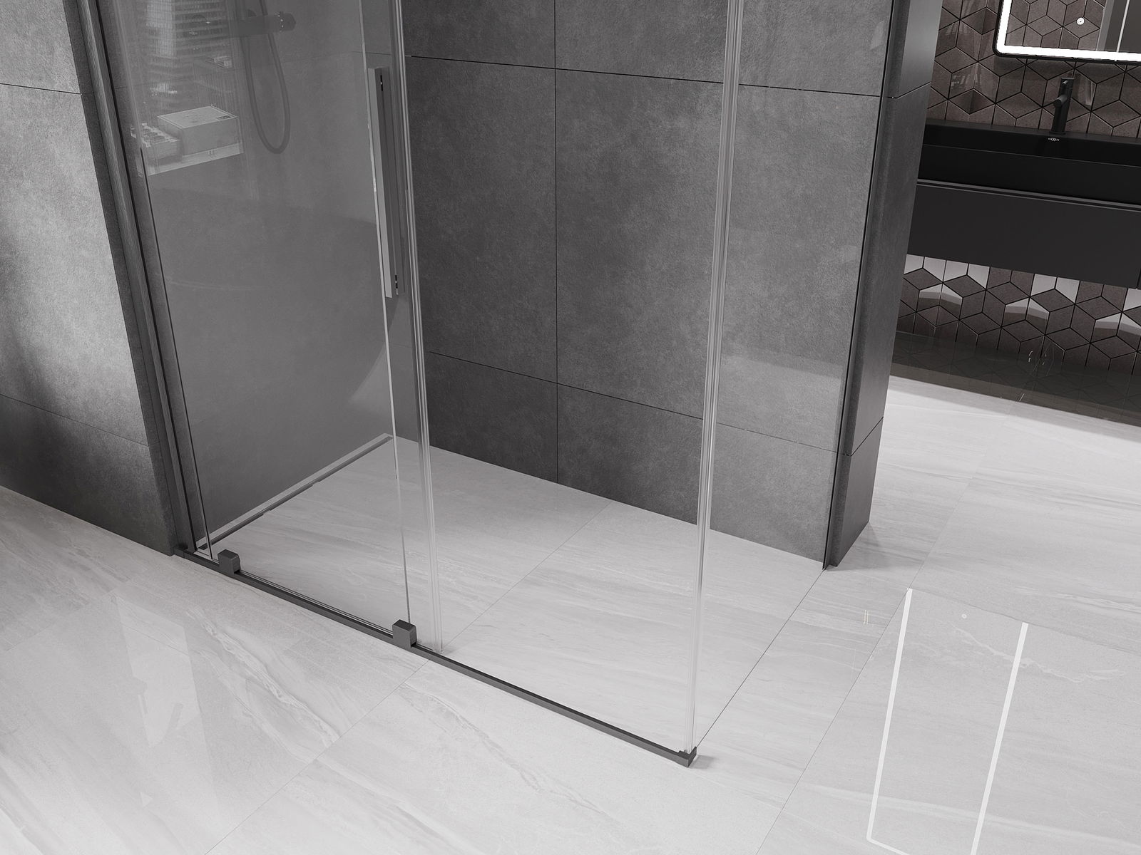 Mexen Velar 160 x 75 cm-es tolóajtós zuhanykabin, átlátszó, szálcsiszolt pisztolyszürke - 871-160-075-01-66