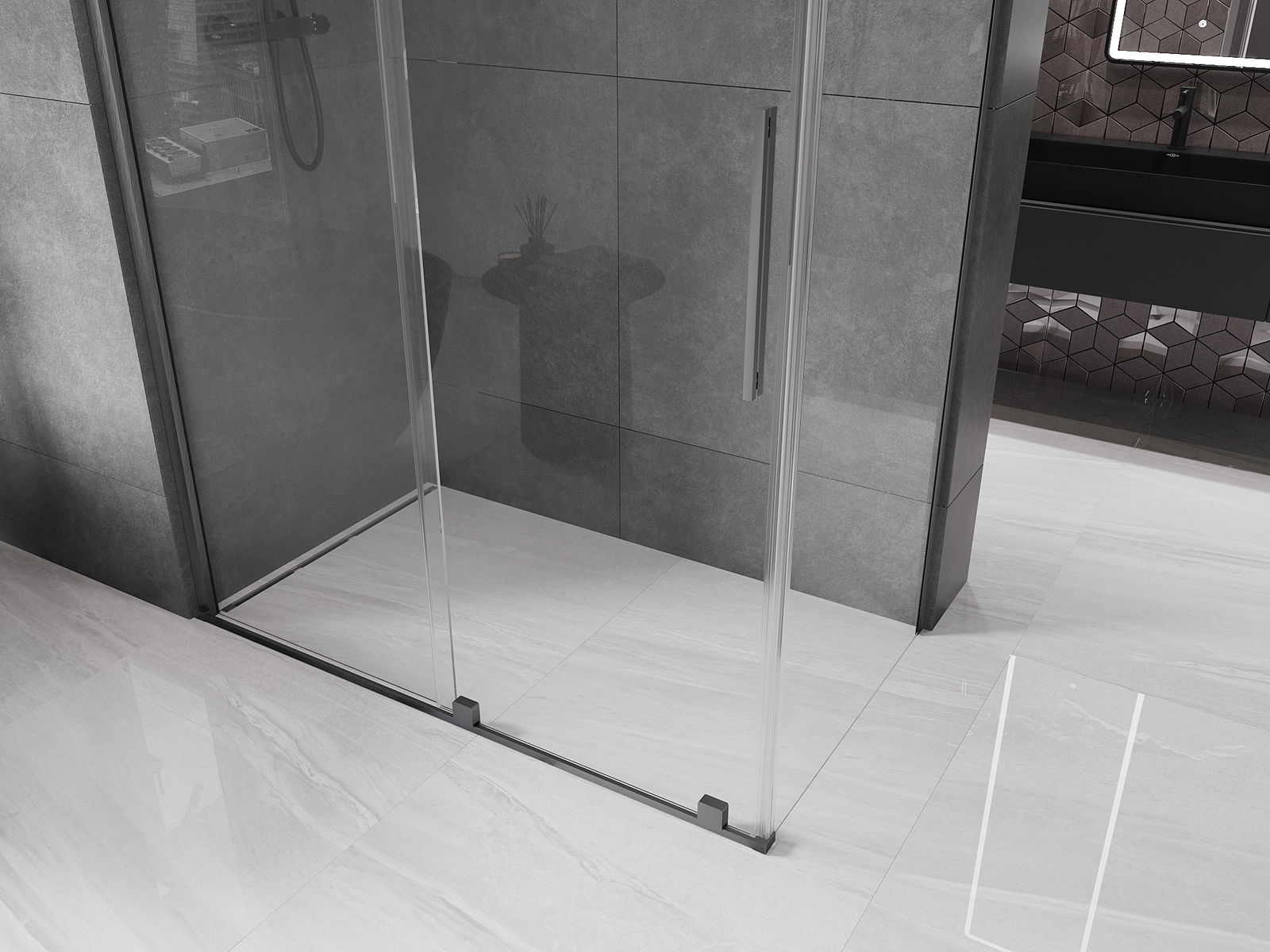 Mexen Velar zuhanykabin tolóajtóval 160 x 90 cm, átlátszó, szálcsiszolt fegyverszürke - 871-160-090-01-66