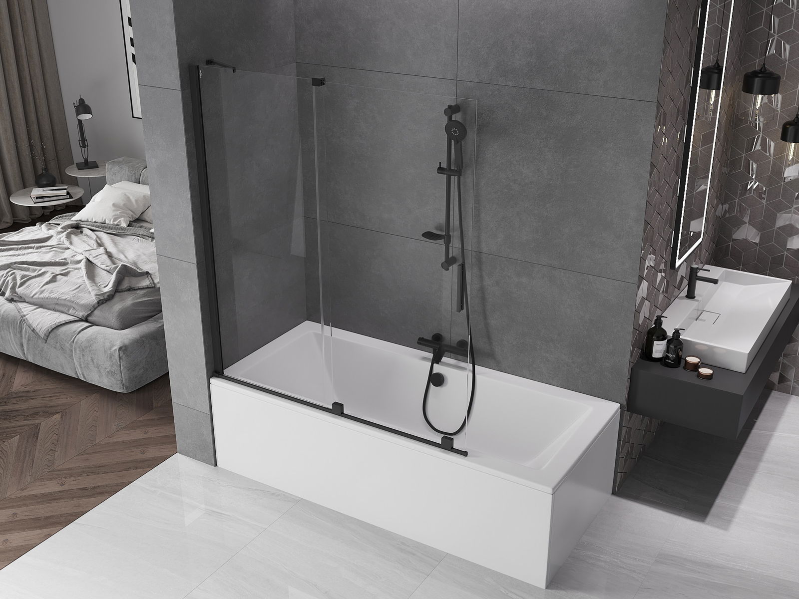 Mexen Velar kétszárnyú tolózuhanyfal 140 x 150 cm, átlátszó, fekete - 896-140-000-01-70