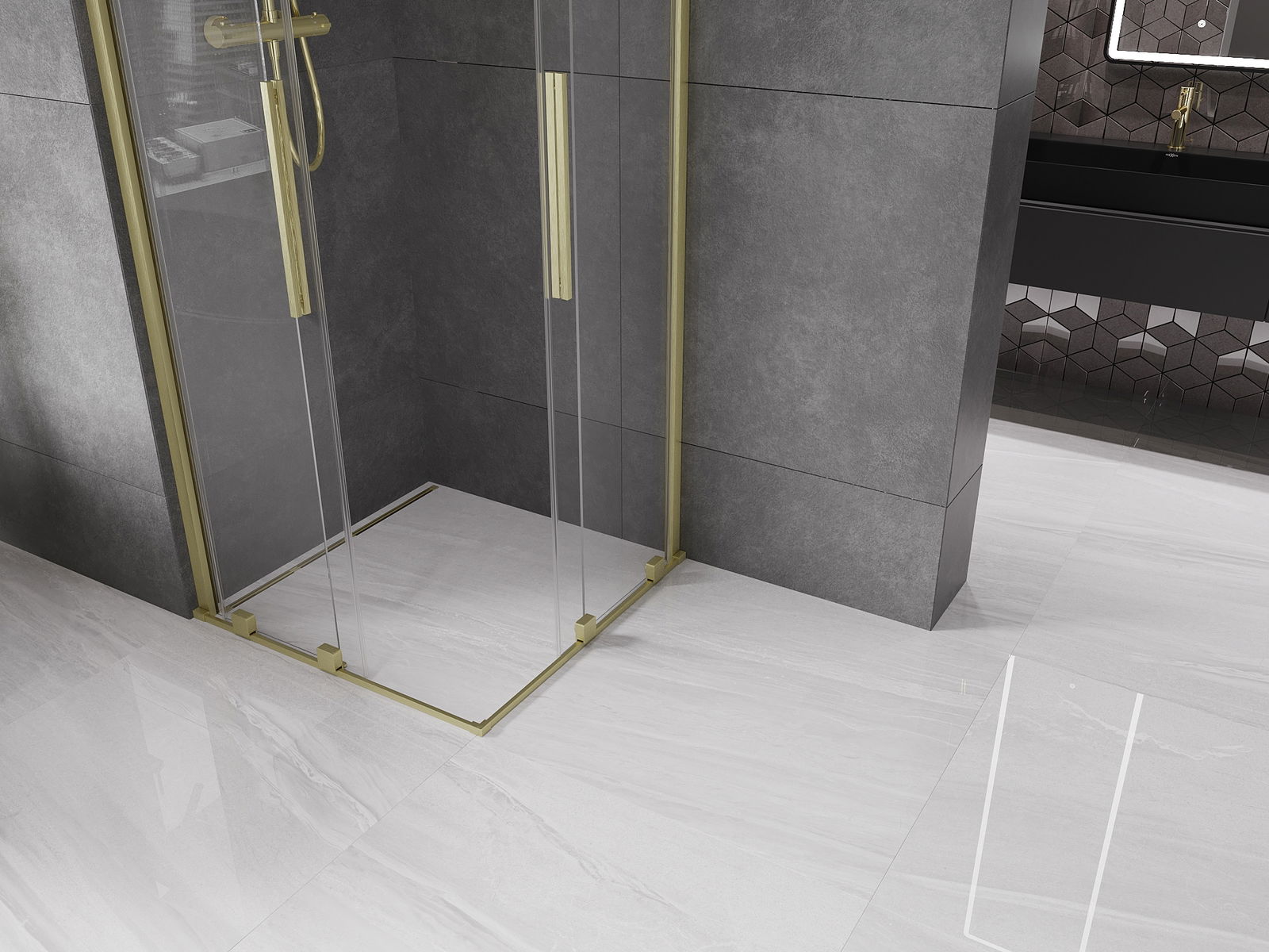 Mexen Velar Duo tolóajtós zuhanykabin 100 x 100 cm, átlátszó, arany szálcsiszolt - 871-100-100-02-55
