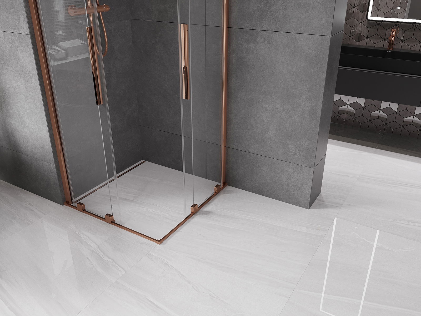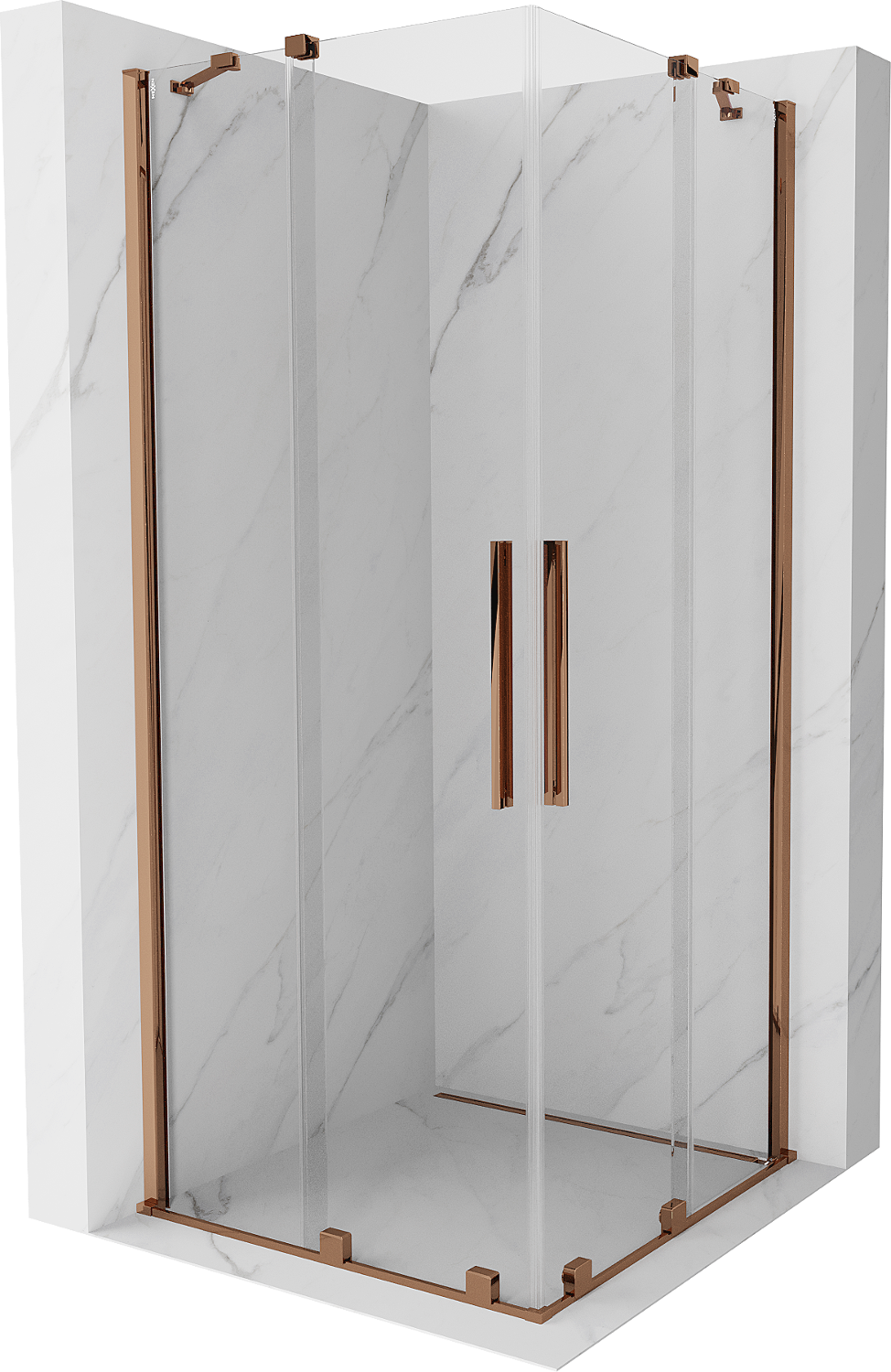 Mexen Velar Duo tolóajtós zuhanykabin 80 x 80 cm, átlátszó, rózsaarany - 871-080-080-02-60