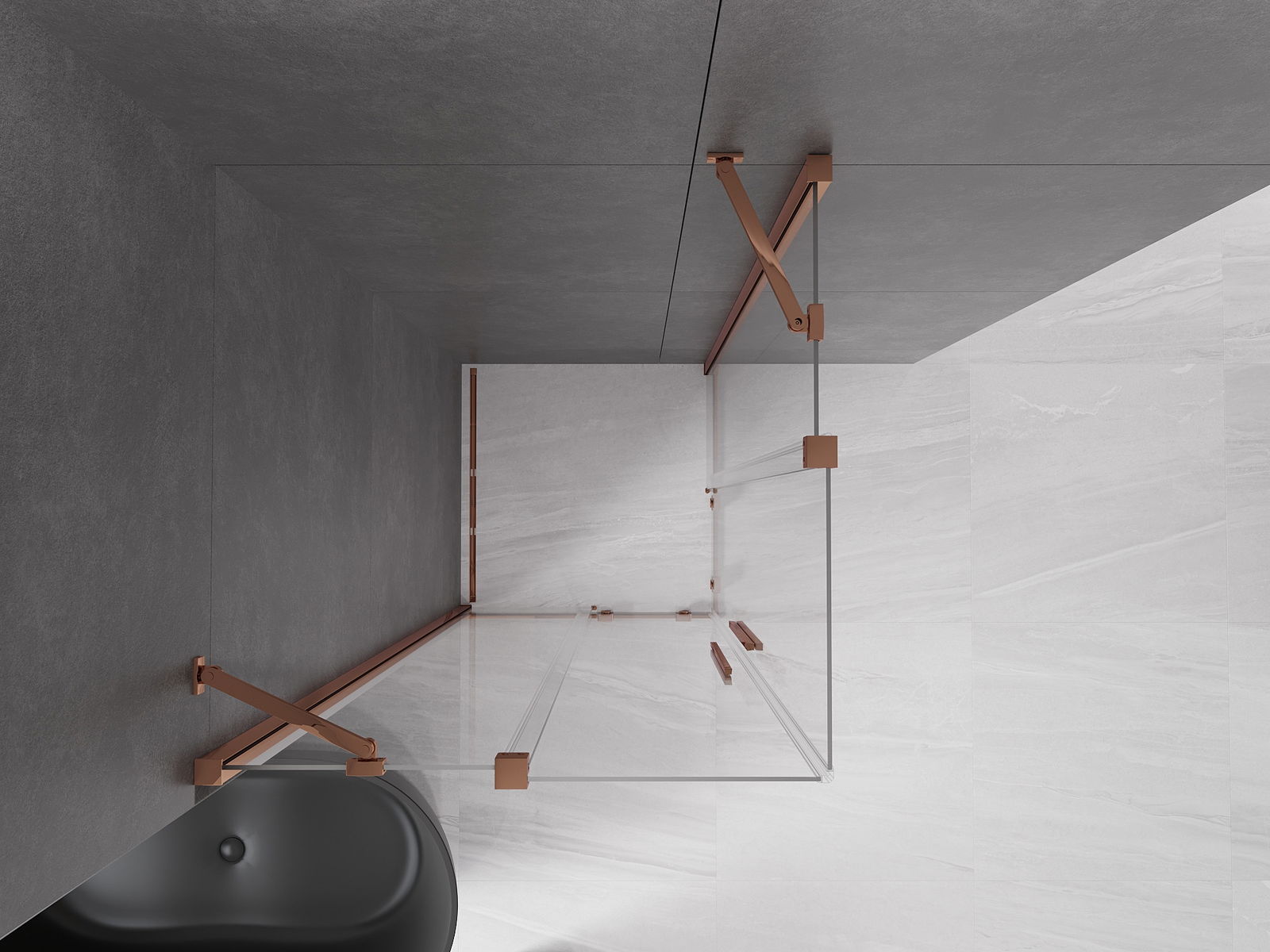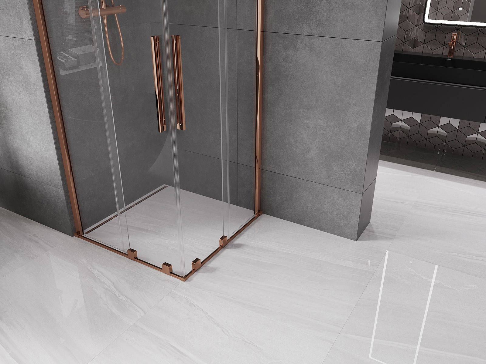 Mexen Velar Duo tolóajtós zuhanykabin 100 x 100 cm, átlátszó, rózsaarany - 871-100-100-02-60