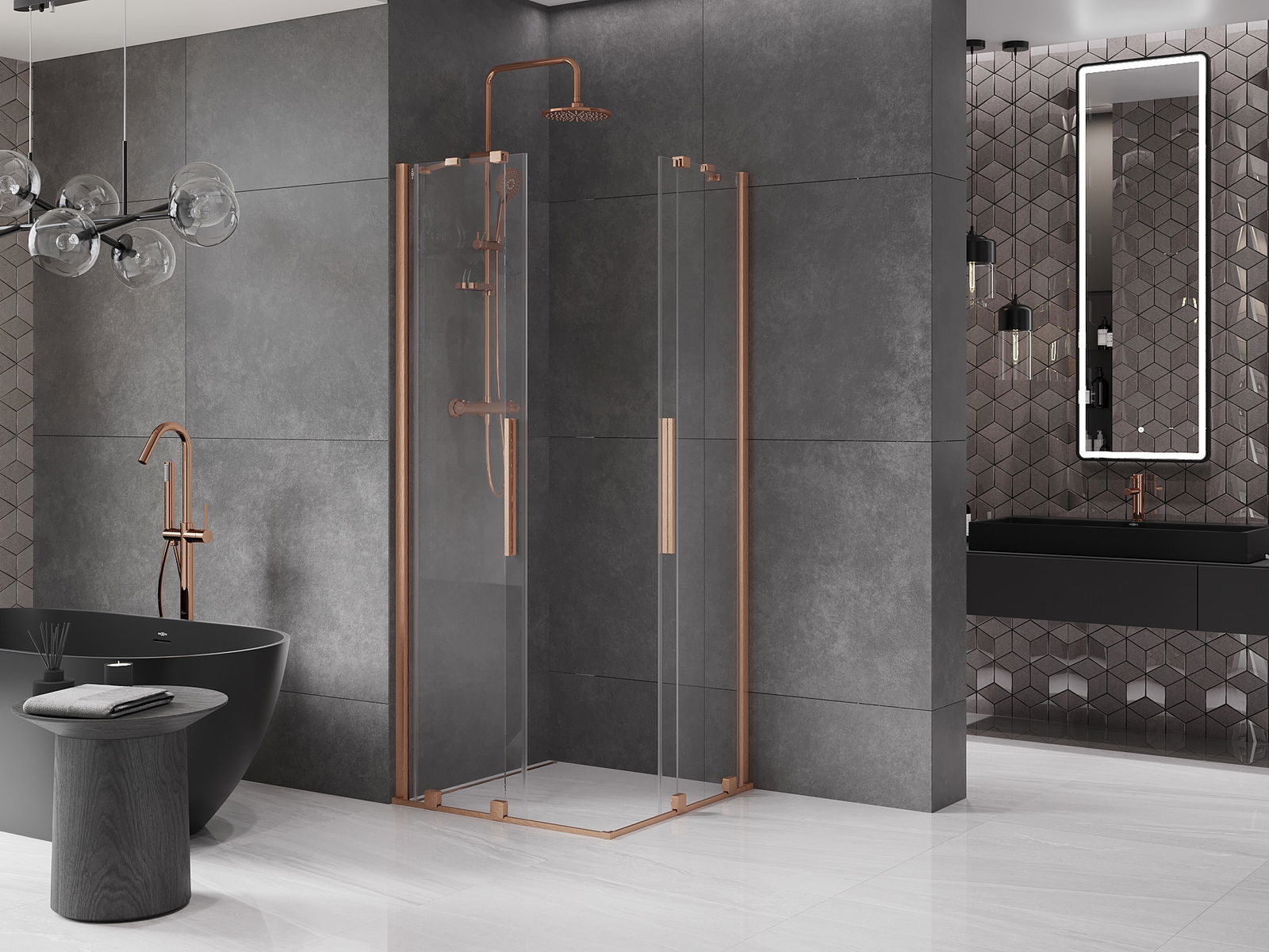 A praktikus és kényelmes fogantyú rozsdamentes acélból készült. A divatos forma a profilok színéhez illeszkedő kivitelezéssel kombinálva modern és elegáns megjelenést kölcsönöz az egésznek, amely minden fürdőszoba esztétikáját feldobja.