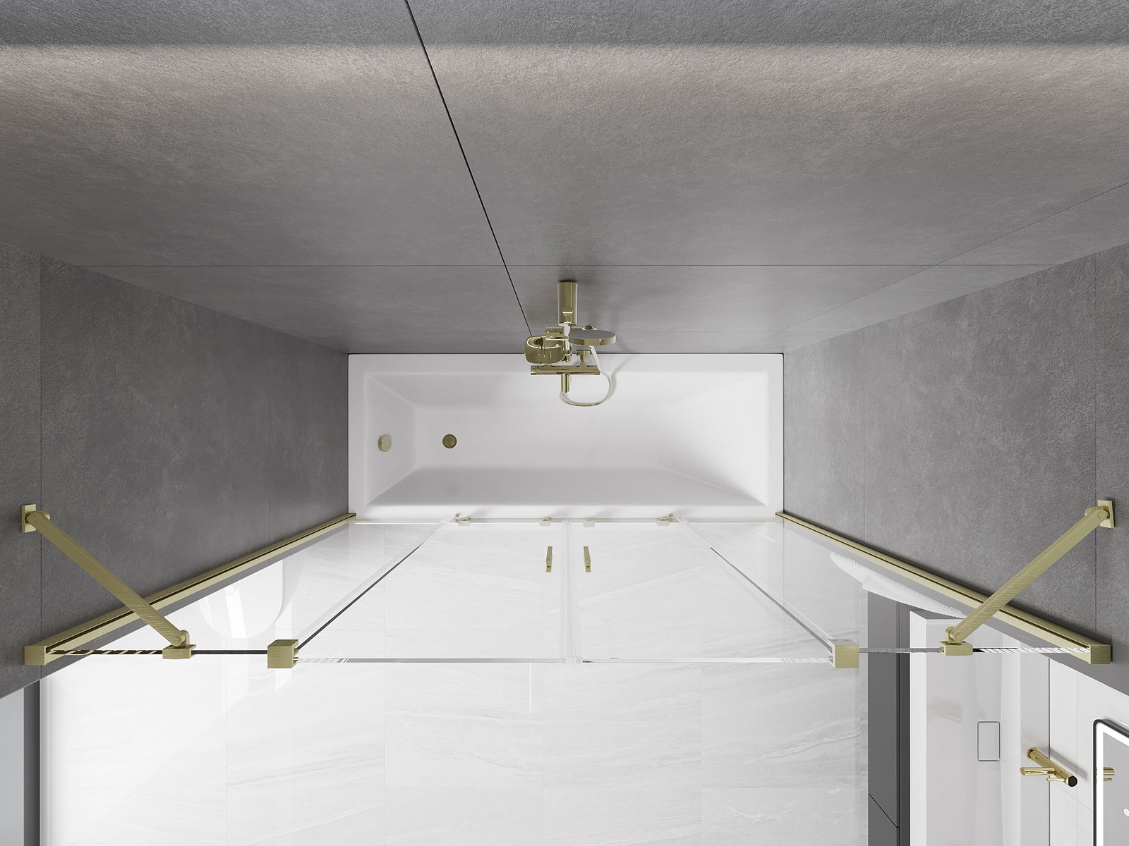 Mexen Velar Duo 2-szárnyú, eltolható fürdőkád paraván 180 x 150 cm, átlátszó, arany szálcsiszolt - 896-180-000-02-55