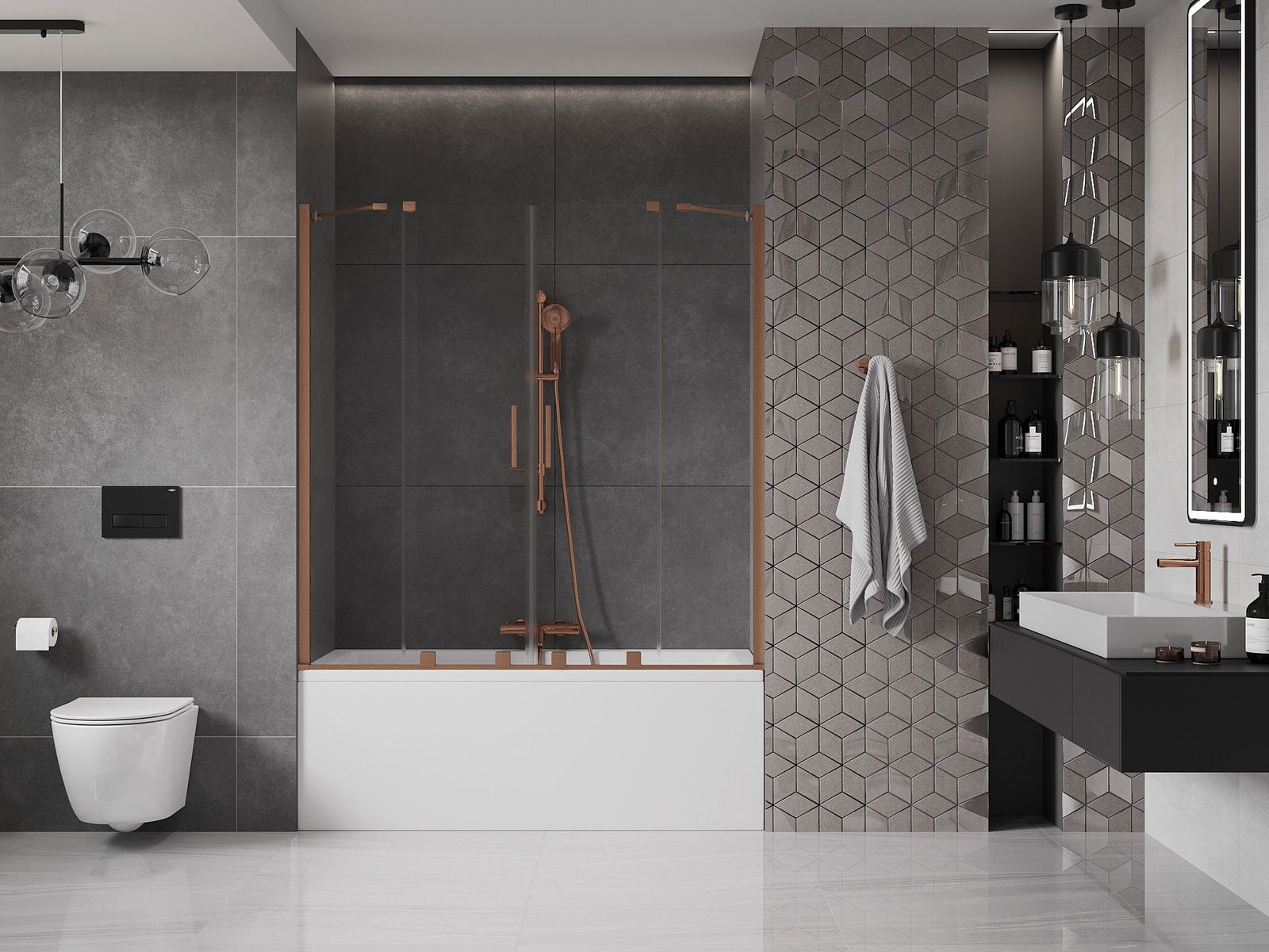 Mexen Velar Duo kétszárnyú toló kádparaván 160 x 150 cm, átlátszó, kefélt réz - 896-160-000-02-65