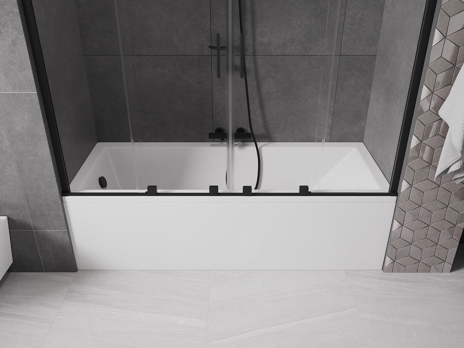 Hatékony védelem a fürdőzés során a víz kiömlése ellen. A képernyő olyan tömítésekkel rendelkezik, amelyek tökéletesen alkalmazkodnak az üveg üvegéhez és a kád széléhez. Funkcionális megoldás, amely biztosítja a biztonságot és az egyszerű karbantartást.